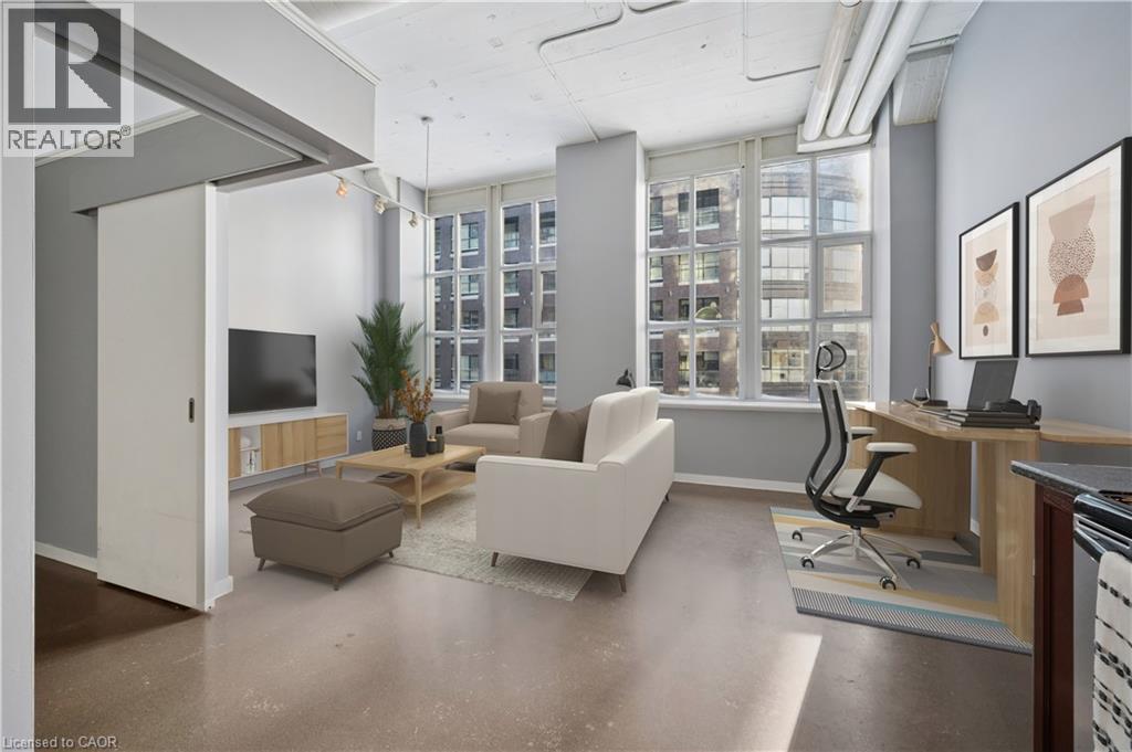 Experience authentic loft living in the heart of Kitchener’s Innovation District at Kaufman Lofts. This 1-bed, 1-bath unit blends historic character with modern convenience. This iconic mid-rise conversion was formerly the historic Kaufman Rubber Company and has preserved the building’s industrial roots while offering an urban lifestyle. You will love the soaring ceiling heights & oversized windows that flood the space with natural light and exposed ductwork that celebrate the building’s rich heritage. Open-concept layout and thoughtfully designed floor plan with polished concrete flooring provides a low-maintenance foundation for everyday living. At the heart of the home is the kitchen with a movable granite-topped island, perfect for casual breakfasts or gathering friends and family while cooking. The kitchen offers ample storage, stainless steel appliances and seamlessly connects to the living space. The bedroom has a corner double door for privacy and spacious closet. The 4 piece bathroom features a tub to relax and unwind. In-suite laundry adds everyday convenience, while the unit comes with owned parking and a private locker for additional storage. Residents of Kaufman Lofts enjoy premium amenities, including a rooftop terrace with herb gardens, gas BBQs, and panoramic views of downtown, a party room for gatherings, and secure bike storage. The location is unparalleled in the heart of DTK walking distance to Google, Communitech, KPMG, D2L, McMaster’s School of Medicine, and the University of Waterloo School of Pharmacy. Just moments from highway access, steps away from LRT stops and the upcoming transit hub connecting GO Train and buses, the perfect location to experience the culture of DTK's restaurants, Kitchener Farmer's Market, cafés, nightlife, and Victoria Park. Whether you’re a first-time buyer, tech professional, downsizer, or investor, this loft provides the perfect combination of history, style, and a vibrant downtown lifestyle. (id:4555)