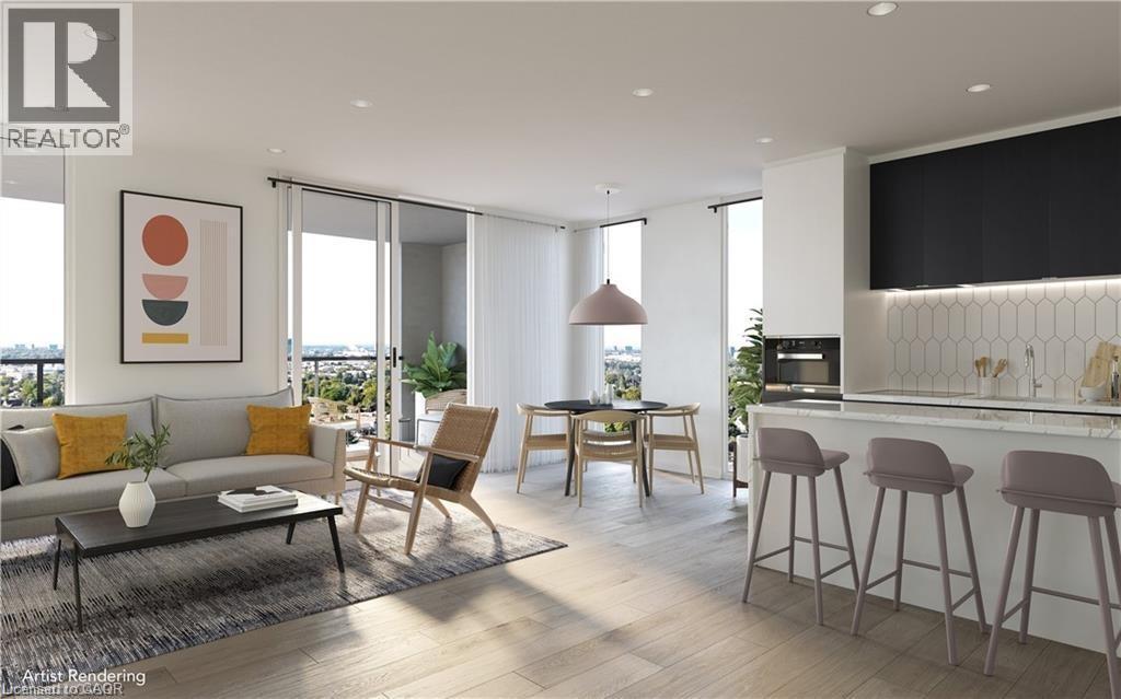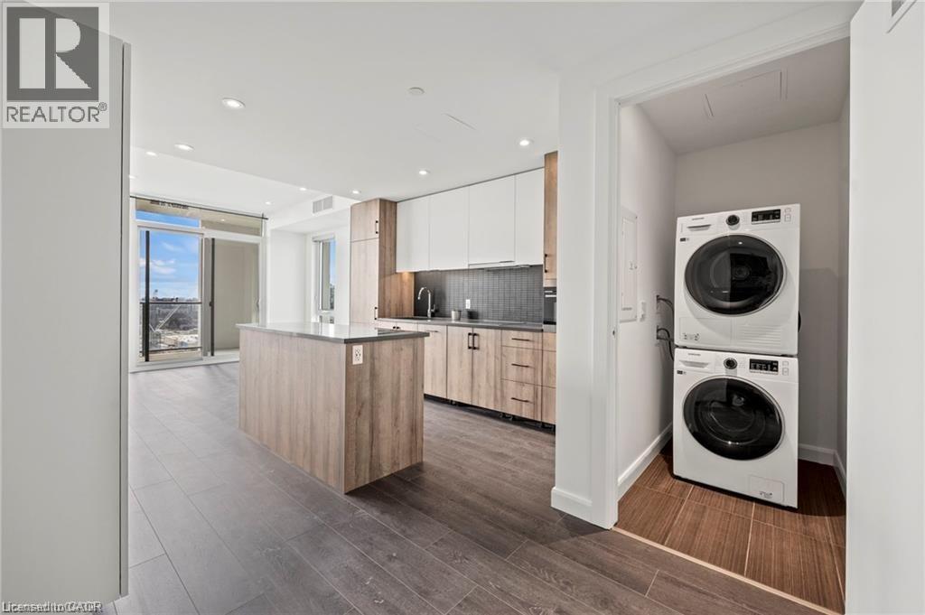 Welcome to Unit 1512, a thoughtfully designed 1-bedroom, 1-bathroom condo offering comfortable urban living in the heart of Kitchener. This modern suite features costume mill work, an open-concept layout with large windows and balcony that bring in plenty of natural light and showcase city views. The kitchen is well-appointed with contemporary finishes and modern appliances, making it both functional and inviting for everyday living or entertaining. The bedroom is generously sized, providing a comfortable and private retreat, while the bathroom features clean, modern finishes. Residents enjoy access to a variety of building amenities suited to an active and social lifestyle, including a gym, sauna, rooftop terrace, and more. Ideally located just steps from hospital, public transit, popular cafés, and downtown attractions, this unit offers a great balance of location, comfort, and modern design in one of Kitchener’s most desirable communities. For additional storage, a lock is also included. (id:4555)