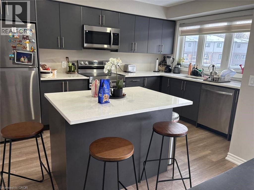 Fantastic opportunity to lease a beautifully maintained 3-bedroom, 2.5-bath stacked townhouse in the highly desirable and family-friendly Doon South neighborhood. This bright and spacious home provides approximately 1,450 sq. ft. of well-designed living space with a rare and functional layout. The open-concept main floor is filled with natural light, creating a warm and welcoming space for everyday living and entertaining. The kitchen features modern finishes, including quartz countertops, dark cabinetry, and pot lights, while the large private balcony is perfect for morning coffee or relaxing in the evening. Conveniently located close to scenic trails, parks, schools, shopping, and major amenities, with easy access to Highway 401-ideal for commuters and families. Well maintained and move-in ready, this home provides comfort, style, and convenience in a prime location. A great opportunity for responsible tenants seeking quality living in Doon South. (id:4555)