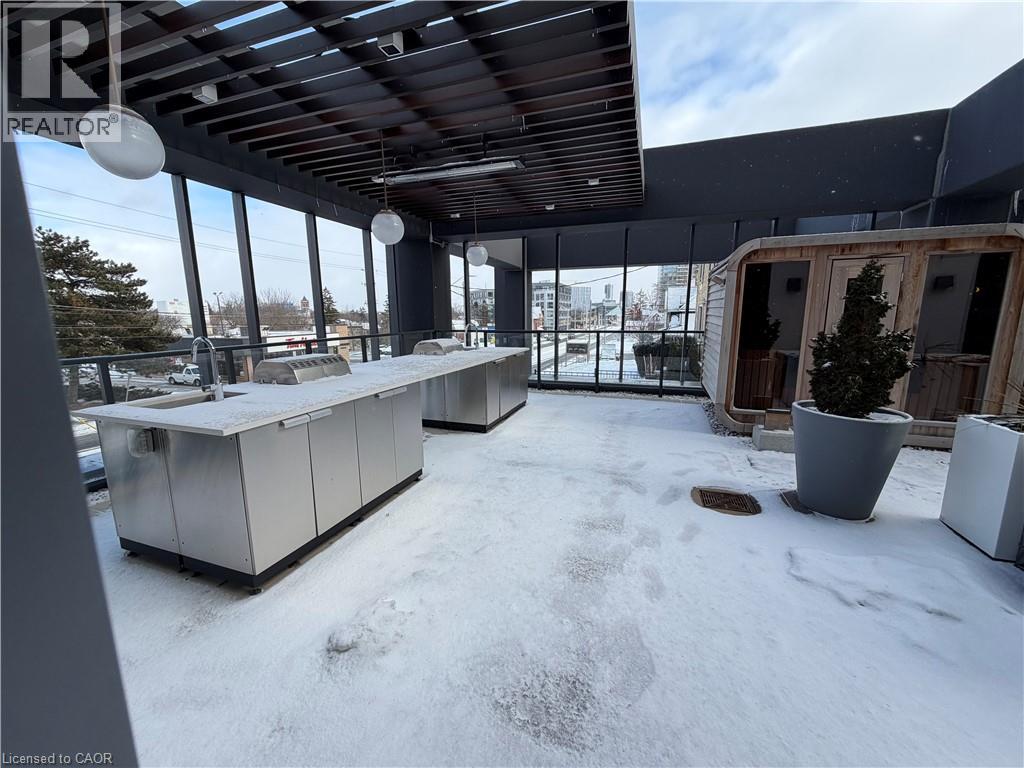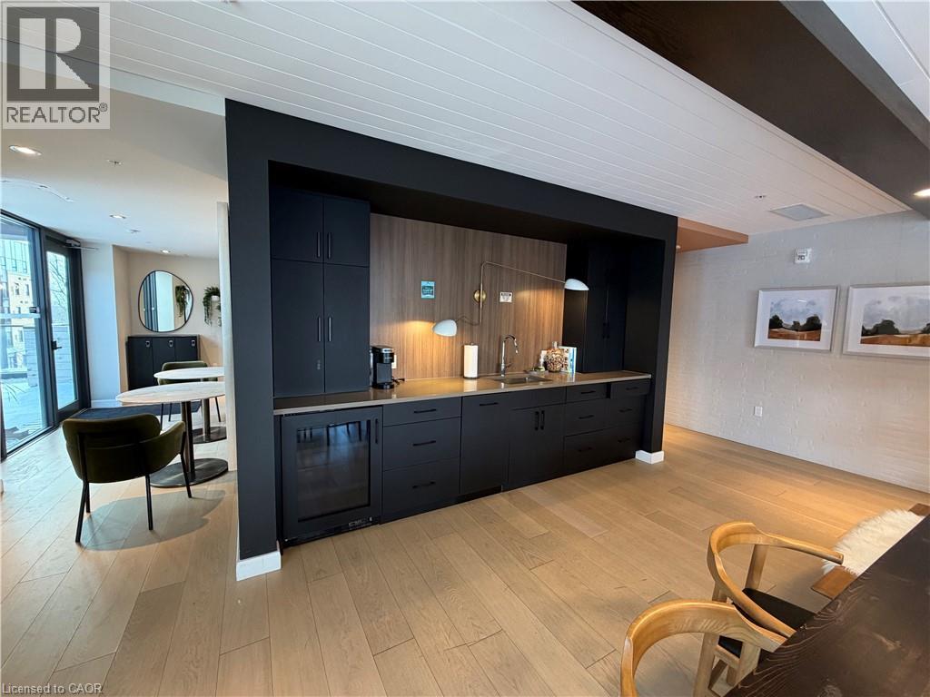 Bright and modern studio suite in the heart of Kitchener’s Innovation District at the Bright Building. This thoughtfully designed unit features floor-to-ceiling windows and an open-concept layout that fills the space with natural light. A sleek Murphy bed allows the living area to transform effortlessly from day to night, maximizing functionality and comfort. The contemporary kitchen is equipped with quartz countertops, built-in stainless steel appliances, and stylish cabinetry, while the bathroom offers Heated Floors for year-round comfort. Step outside to a private terrace—an ideal extension of the living space and a perfect spot to unwind. In-suite laundry adds everyday convenience. Residents enjoy premium amenities including a community BBQ, sauna, co-working space, social lounge, and rooftop terrace. Steps from the LRT, Google, Grand River Hospital, and downtown shops and restaurants, this is refined urban living at its best. (id:4555)