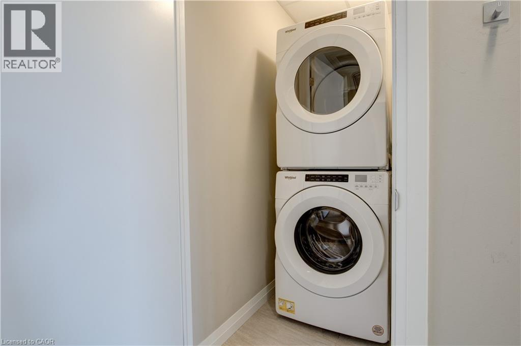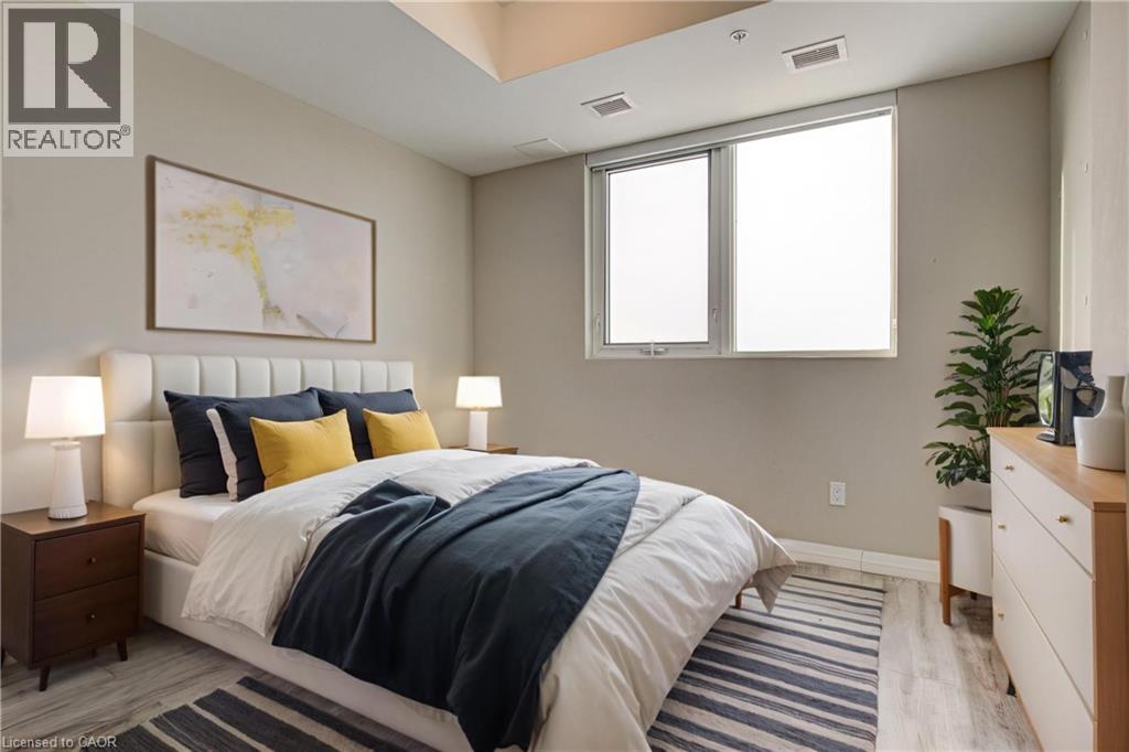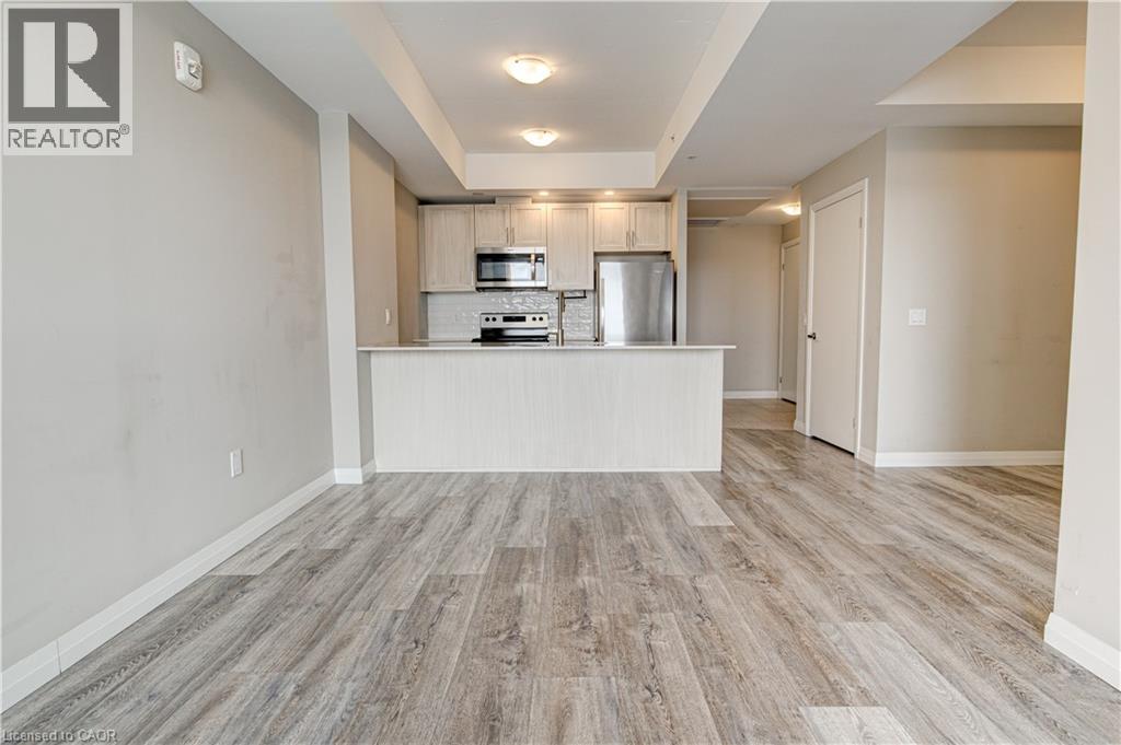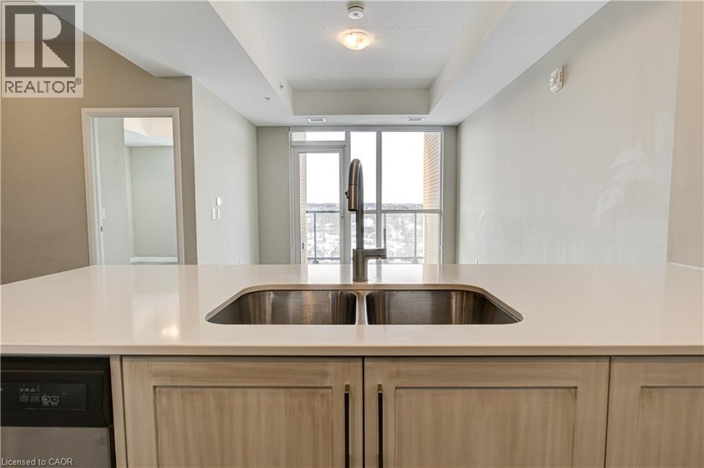 Located just steps to downtown Kitchener and the beautiful Victoria Park, this 1 bedroom plus den condo at 108 Garment Street offers a welcoming place to settle into city living. Completed in 2022, the unit features a practical layout and a kitchen that truly anchors the space. Upgraded appliances and cabinetry, a double sink, dishwasher, and generous counter space make it easy to cook at home, while the extra-long peninsula comfortably seats three to four—ideal for casual meals or hosting friends. The living area flows easily from the kitchen and opens to a private west-facing balcony, offering a quiet place to unwind in the afternoon and evening. The den adds valuable flexibility, working equally well as a home office, extra storage, or cozy reading nook. The bedroom is comfortably sized, and the unit is completed by a contemporary bathroom and the convenience of in-suite laundry. Indoor garage parking for one vehicle and a storage locker are included with the unit. Residents also enjoy access to a well-equipped fitness room, yoga space, party room, and an outdoor terrace featuring a pool, basketball court, BBQ area, and plenty of seating for gathering with friends. Ample visitor parking next door makes hosting easy. With shops, transit, dining, and the tech district just outside your door, this home offers an easy, low-maintenance lifestyle in a central location. (id:4555)