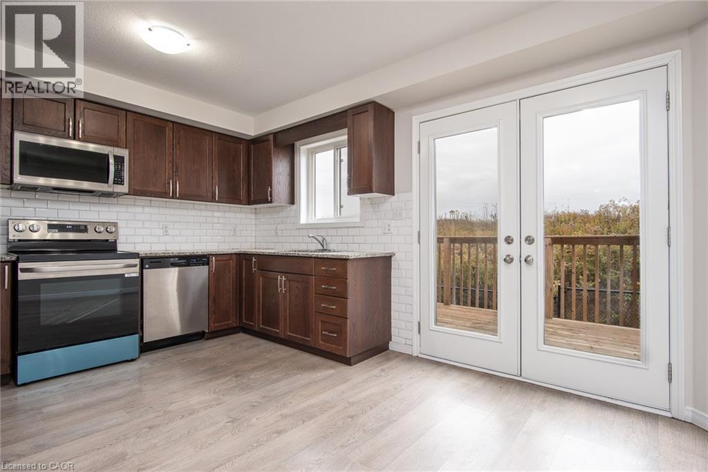 Welcome to this bright and well-maintained 3-bedroom, 1.5-bath townhome offering 1,457 sq ft of functional living space in a growing Kitchener neighbourhood. The main floor features a spacious front living room with large windows, a convenient powder room, and a modern kitchen with stainless-steel appliances, ample cabinet storage, and generous counter space. The kitchen connects to the dining area, where double French doors open to a private deck—perfect for morning coffee, BBQs, or quiet evenings outdoors. Upstairs, you’ll find three comfortable bedrooms and a full 4-piece bathroom. The primary bedroom offers his-and-her closets, and the home includes in-suite laundry and plenty of additional storage. Enjoy dedicated parking at your door, with visitor parking available in the complex. Located steps from playgrounds, sports fields, pickleball courts, Strasburg Creek Natural Area and other scenic walking trails in Kitchen. A brand-new indoor recreation complex is under construction nearby, soon to feature swimming pools, a turf fieldhouse, and fitness facilities—adding even more value to this convenient location.The area continues to grow, with new shopping and dining options, along with easy access to schools, public transit, the expressway, and Highway 401. This move-in-ready townhome offers a balance of comfort and everyday convenience—perfect for families or professionals looking for a welcoming place to call home. (id:4555)