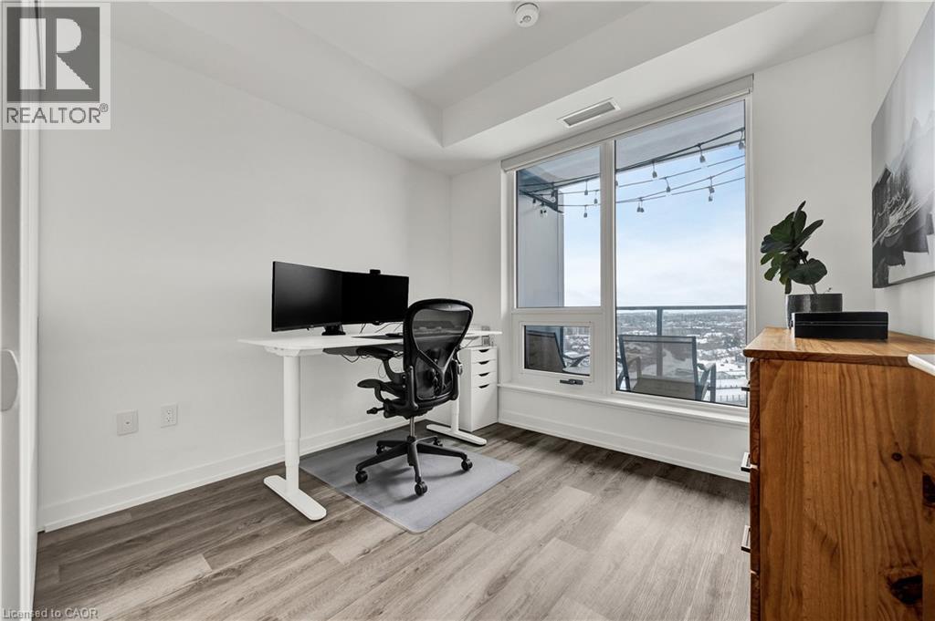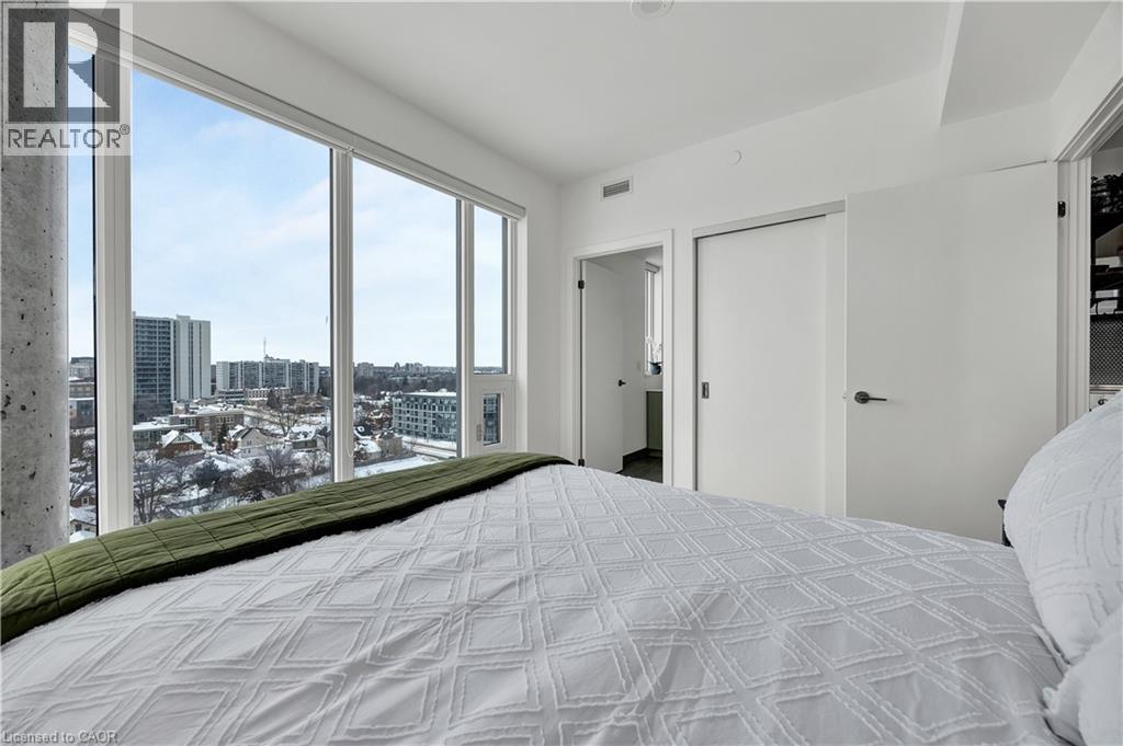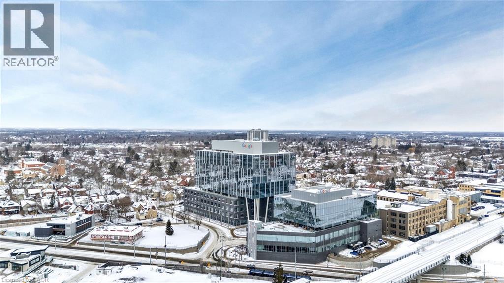 Welcome to Station Park, one of downtown Kitchener’s most sought-after addresses. This UPGRADED ($25,000 in upgrades) 2-bedroom, 2-bath corner suite includes one UNDERGROUND parking space and an OVERSIZED storage locker. Located on the 12th floor, the unit boasts sweeping city views and beautiful natural light throughout the day, with treetop sightlines and striking sunrise and sunset vistas. The thoughtfully designed kitchen features quartz countertops and an oversized island with seating—perfect for entertaining or casual dining—along with generous cabinetry and prep space.The open-concept living area is bright and inviting, framed by large windows. Retreat to the primary bedroom, where floor-to-ceiling windows wrap the space in light and views, complemented by a private ensuite with a sleek glass walk-in shower. The second bedroom, presently utilized as a home office, offers excellent versatility and can easily serve as a true bedroom, enhanced by a large window and abundant natural light. Completing the layout is a second full bathroom featuring a bathtub. Additional features include in-suite laundry, internet included in the condo fees, and a private balcony ideal for enjoying sunrise coffee or unwinding with a glass of wine at sunset. Station Park is known for its exceptional lifestyle amenities, including a fully equipped fitness centre, pool and hot tub, sauna, Peloton room, bowling alley, arcade, party room, outdoor workout areas, and dog wash station. Perfectly positioned just steps from Google, Communitech, KPMG, the Schools of Pharmacy and Medicine, the MedTech Hub, LRT, GO Train, and an array of shops, cafés, and restaurants—this is downtown living without compromise. (id:4555)