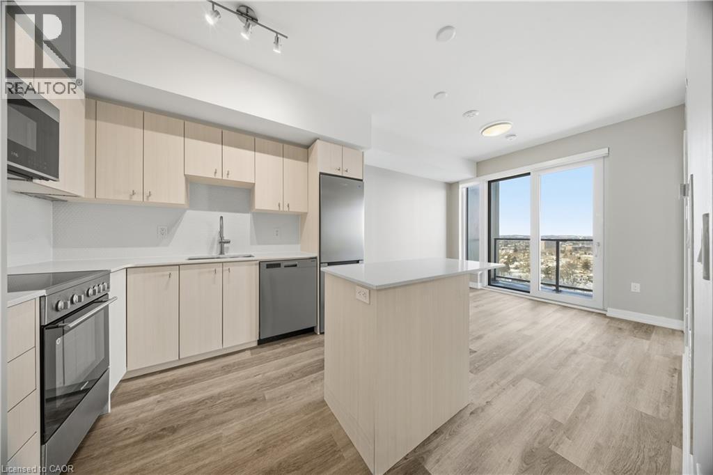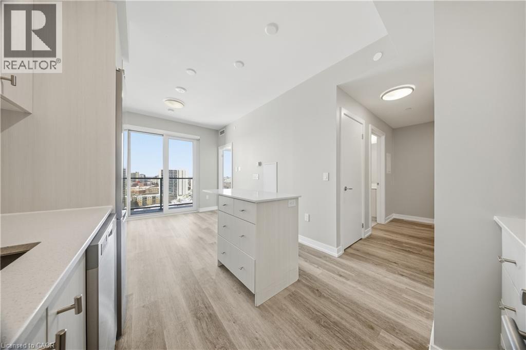 Located in the heart of Kitchener's Innovation District, this modern 1 bedroom plus den suite offers an ideal blend of urban convenience and upscale living. The home features a smart, carpet-free layout highlighted by upgraded vinyl plank flooring throughout, creating a clean and contemporary feel. The kitchen is outfitted with brand-new stainless steel appliances, a stylish breakfast island, and plenty of functional space, while a stackable washer and dryer are included for everyday ease. Step outside to enjoy your own private 45 sq. ft. balcony-perfect for relaxing or entertaining. Transit access couldn't be easier, with the LRT right outside the building, connecting you seamlessly to both Kitchener and Waterloo. The University of Waterloo and McMaster's School of Medicine are each reachable in approximately 15 minutes by transit, and major tech employers such as Google are just moments away, making this an exceptional location for both professionals and students. As an added bonus, this unit comes with an AIRBNB licence! Residents of Union Towers at Station Park enjoy access to an impressive collection of resort-style amenities rarely found in local developments. These include a two-lane bowling alley with lounge seating, an elegant social lounge complete with bar, pool table, and foosball, a private hydropool swim spa with hot tub, and multiple fitness spaces featuring gym equipment, yoga and Pilates studios, and a dedicated Peloton room. Additional conveniences include a dog wash and pet spa, a beautifully landscaped outdoor terrace with cabana seating, and high-speed BELL internet included for residents. (id:4555)