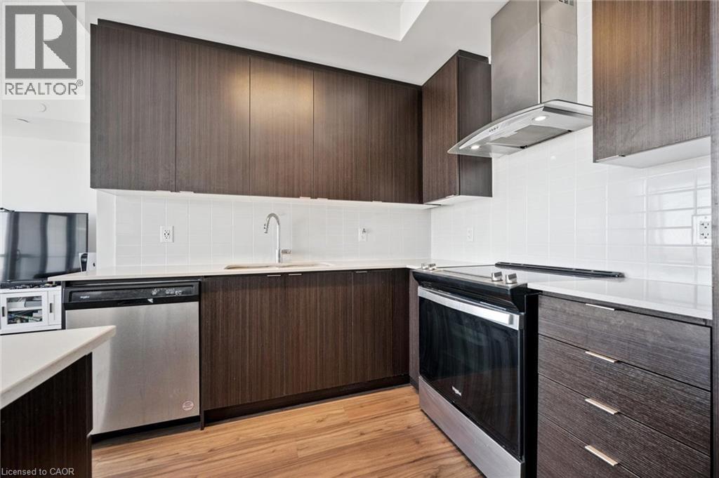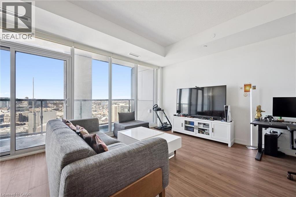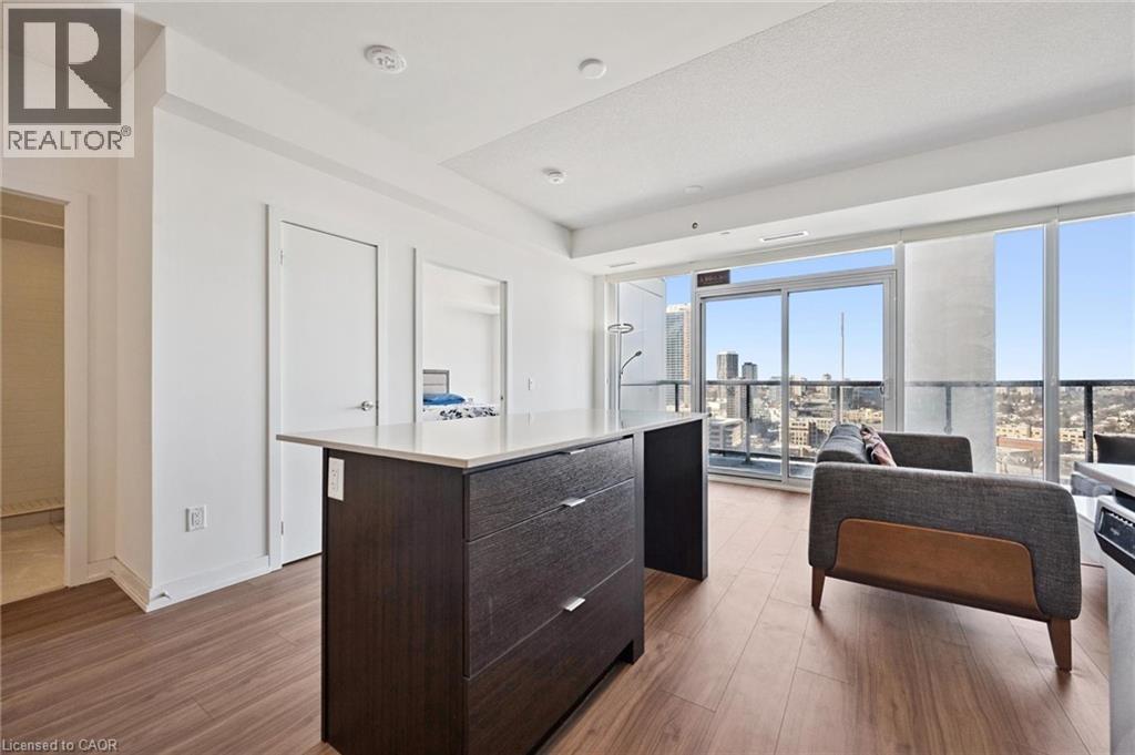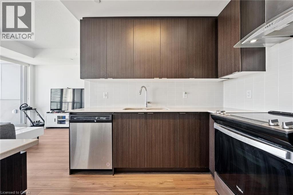 This 1 bedroom plus den condo is located in the bustling downtown area, offering a modern and stylish living space. As you step into the unit, you are greeted by a spacious open-concept living room and kitchen area, which is perfect for entertaining guests or relaxing after a long day. The kitchen features high-end stainless steel appliances, a kitchen island, and a sleek backsplash. The countertop provides ample space for meal preparation and doubles as a breakfast bar for quick meals. The bedroom is spacious and features large windows, which provide plenty of natural light and a stunning view of the city skyline. This unit features electric motorized blinds on all windows. The den can be used as a home office, or additional storage space, adding to the flexibility and functionality of the unit. The bathroom is elegantly designed with modern fixtures, a vanity sink, and a full-size bathtub. Other amenities include exclusive storage locker and parking, in-unit laundry, central air conditioning and heating, and a private balcony that provides a breathtaking view of the city. The building offers additional amenities, such as a fitness centre, a rooftop terrace, a walking/running track on the rooftop and 24-hour security, ensuring safety and convenience. This 1 bedroom plus den condo is perfect for those who want to experience the urban lifestyle with easy access to restaurants, cafes, shopping, and entertainment options that downtown has to offer. It is ideal for young professionals, couples, investors or small families who are looking for a comfortable and convenient living space in the heart of the city. (id:4555)