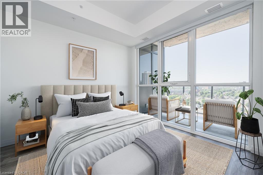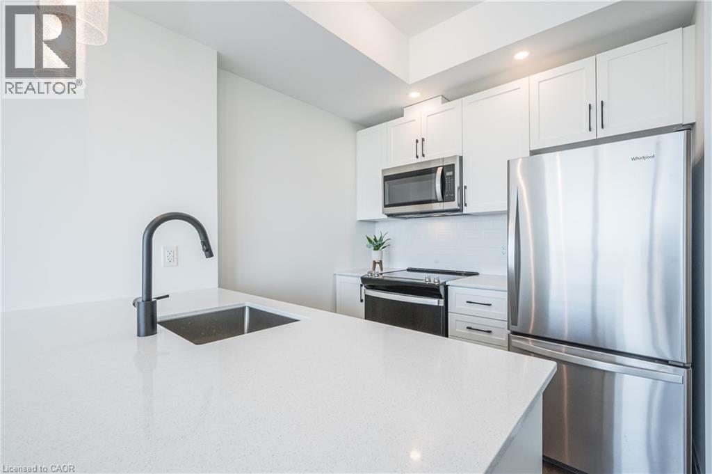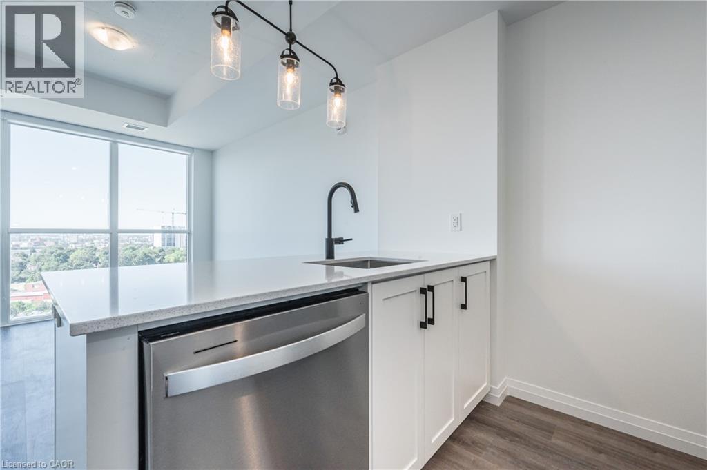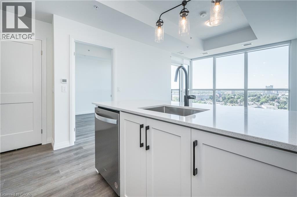 HIGHLY SOUGHT-AFTER GARMENT CONDOS! AVAILABLE APR. 1ST! This one bed, one bath includes a NOOK FOR OFFICE SPACE and TONS of upgrades! The kitchen features bright white cabinets, clean lines, premium pendant lighting and breakfast bar. The unit also features upscale flooring, a great sized bedroom with ceiling to floor windows and large walk-in closet, a 4pc bathroom, in-suite laundry, balcony with soaring views, and one underground parking space. The building offers some of the best amenities a building offers in Downtown Kitchener: rooftop pool, fitness room, party room, relaxation area, yoga spot, pet run, urban park, sport court - it's no wonder this is the place to be! Located steps to downtown Kitchener, Google, KPMG, Deloitte, future LRT hub, Go Train, D2L, Communitech, School of Pharmacy, School of Medicine, Victoria Park, shops, restaurants, entertainment and so much more! Base internet included in condo fees. (id:4555)