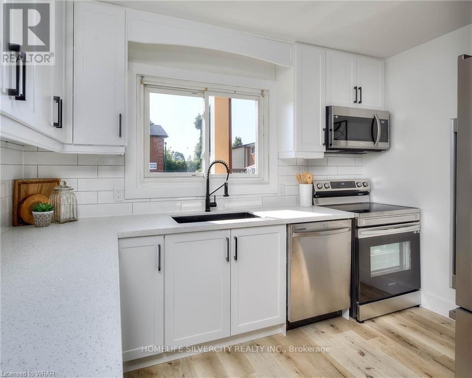 Available Now! Experience comfort, convenience, and community in this lovely townhouse located in the desirable Village East / Stanley Park area of Kitchener - perfect for families, professionals, or anyone seeking a spacious, move-in ready home. Property Features : right, open-concept main floor living space with plenty of natural light-ideal for relaxing or entertaining. Three bedrooms, providing flexible space for a home office, guests, or growing family. Functional kitchen with ample cabinetry and room for modern appliances. Spacious finished basement with laundry, storage, and versatile space great for a rec room, home gym, or workspace. Private outdoor area offering a backyard or patio space-perfect for summer BBQs and outdoor relaxation. Outstanding Location: Situated in a well-established residential neighbourhood in Kitchener East, this home offers quick access to everyday amenities and transportation. Close to major roadways including Highway 8, making commuting easy. Minutes to schools, shopping centres, grocery stores, dining and service shops. Public transit access nearby. A short drive to parks and recreation spots - perfect for outdoor activities and family fun. Parking Included. Tenant to pay 100% Utilities. Lawn Moving and Snow removal are managed by Condominium. (id:4555)