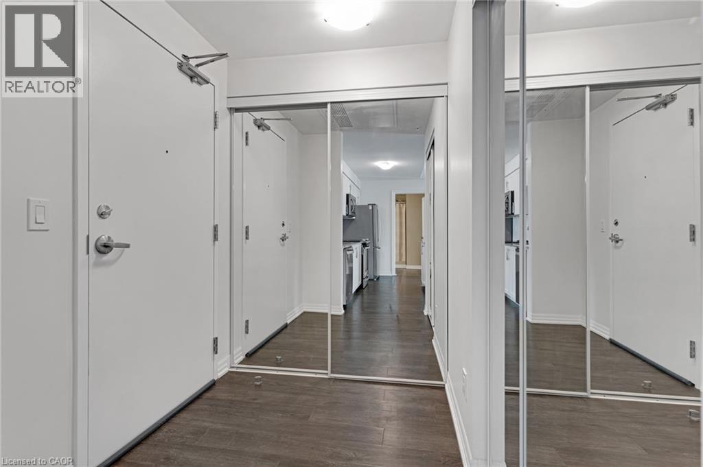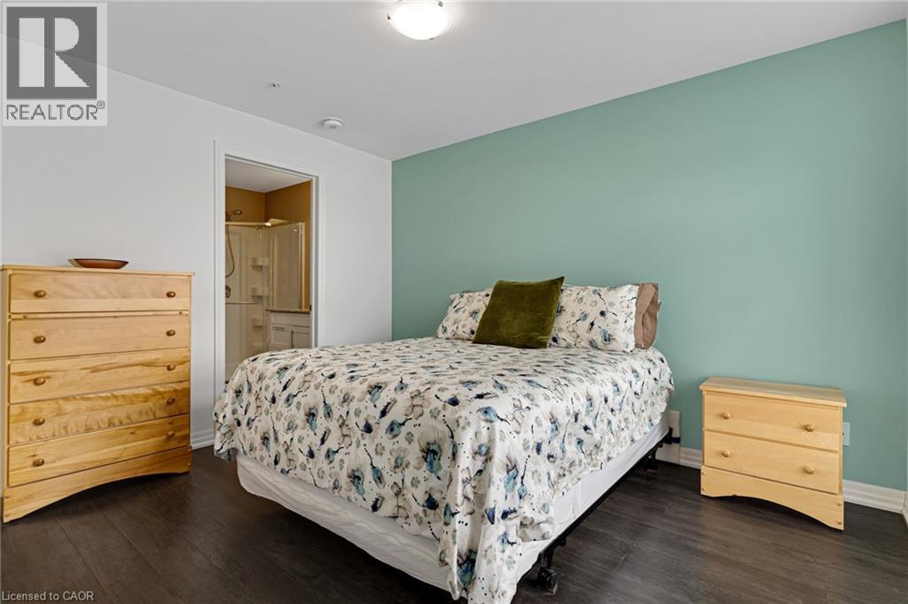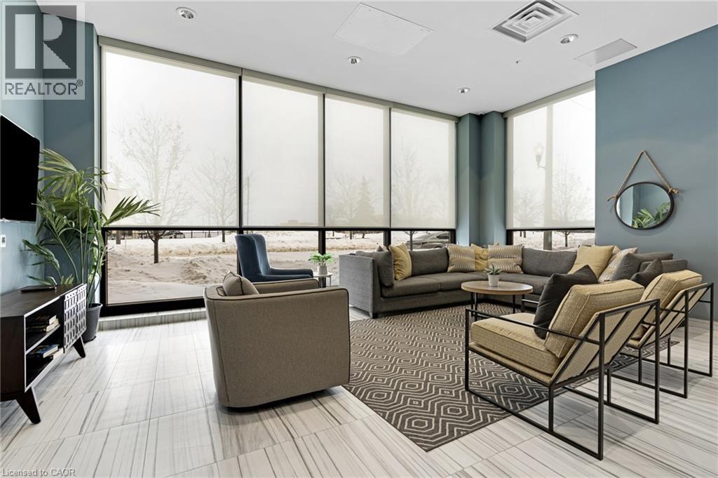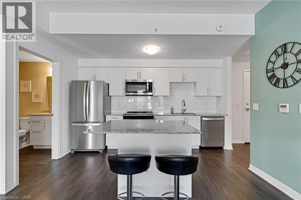 Welcome to this modern, sun-filled condo offering a stylish open-concept living and kitchen design with expansive windows that flood the space with natural light. This newer building features upgraded finishes throughout, including engineered hardwood flooring, quartz countertops, stainless steel appliances, and a built-in microwave for a sleek, contemporary feel. The spacious primary bedroom includes a large closet and a private en-suite bathroom, providing both comfort and functionality. A Juliette balcony adds charm and allows fresh air and natural light to flow throughout the unit. The second bedroom can be used as a bedroom or an office. The condo includes one parking space and access to excellent building amenities, including a fully equipped fitness centre and a party/meeting room, ideal for entertaining or working from home. Ideally located close to major highways, GoodLife Fitness, Sobeys, restaurants, shopping, parks, and everyday conveniences—this is an exceptional opportunity for a professional tenant seeking comfort, convenience, and a modern lifestyle. Some furniture can be left if desired by the tenant.- This unit is BARRIER-FREE COMPLIANT (id:4555)