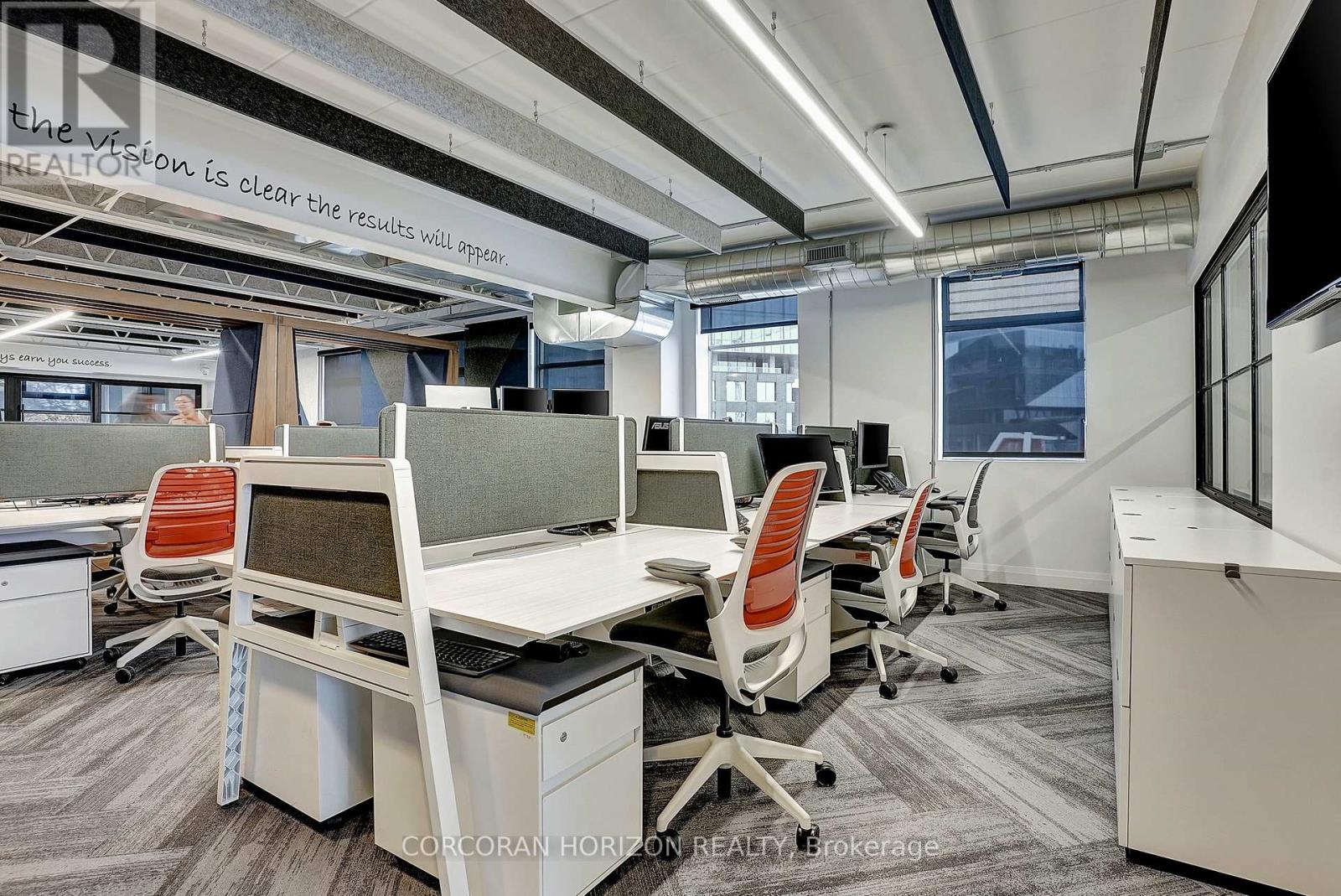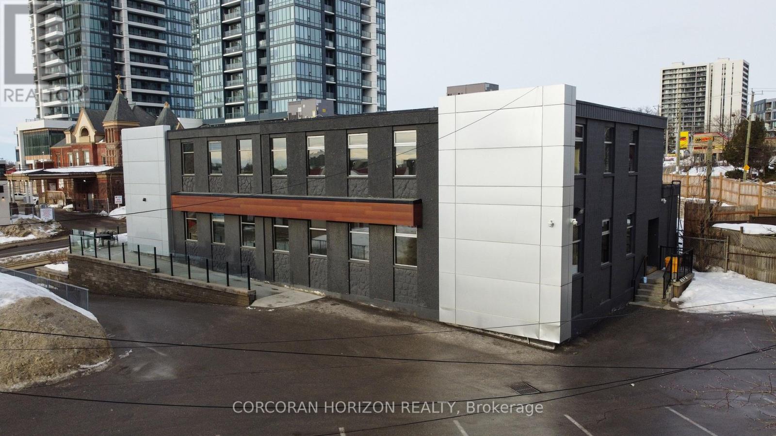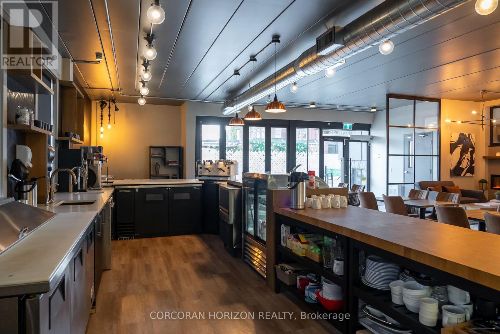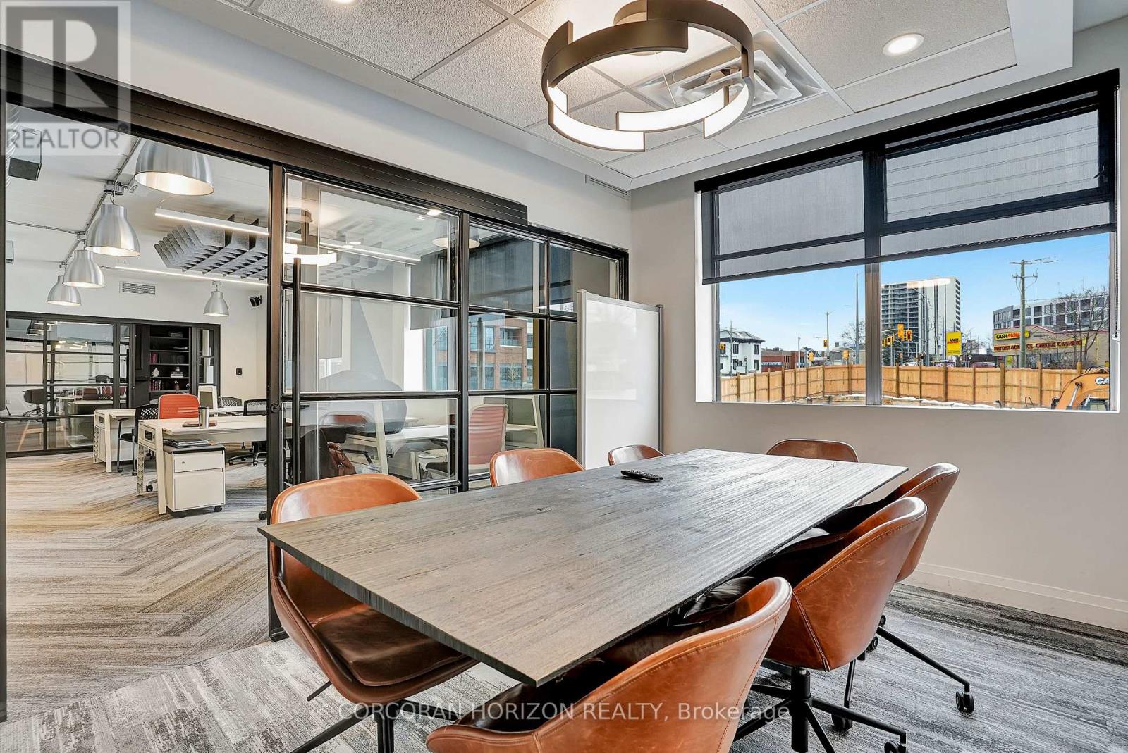 A rare, turnkey office opportunity in one of Downtown Kitchener's most desirable locations. Positioned steps from the ION LRT and immediately adjacent to the Google building, this fully renovated property offers strong presence within a rapidly evolving urban core. The space is thoughtfully designed to support modern workstyles, combining open, light-filled areas with private offices and meeting rooms across multiple levels. A signature main-floor café anchors the building, featuring a gas fireplace and accordion-style doors that open onto a private patio-ideal for client hosting, team gatherings, or events. The property offers exceptional flexibility, designed to adapt to a wide range of tenancy structures-from fully dedicated use to collaborative, multi-occupant environments. The layout includes multiple open-concept work areas, upgraded private offices on both upper and lower levels, five meeting rooms, seven washrooms, and several kitchenettes, including a dedicated staff kitchen. Large windows throughout provide excellent natural light and an energized work environment. A significant downtown advantage, the property includes 27 on-site parking spaces, a rare offering that enhances accessibility for staff, clients, and visitors. Well suited for office, technology, creative, or professional tenants seeking a premium, transit-oriented location with character, functionality, and flexibility. (id:4555)