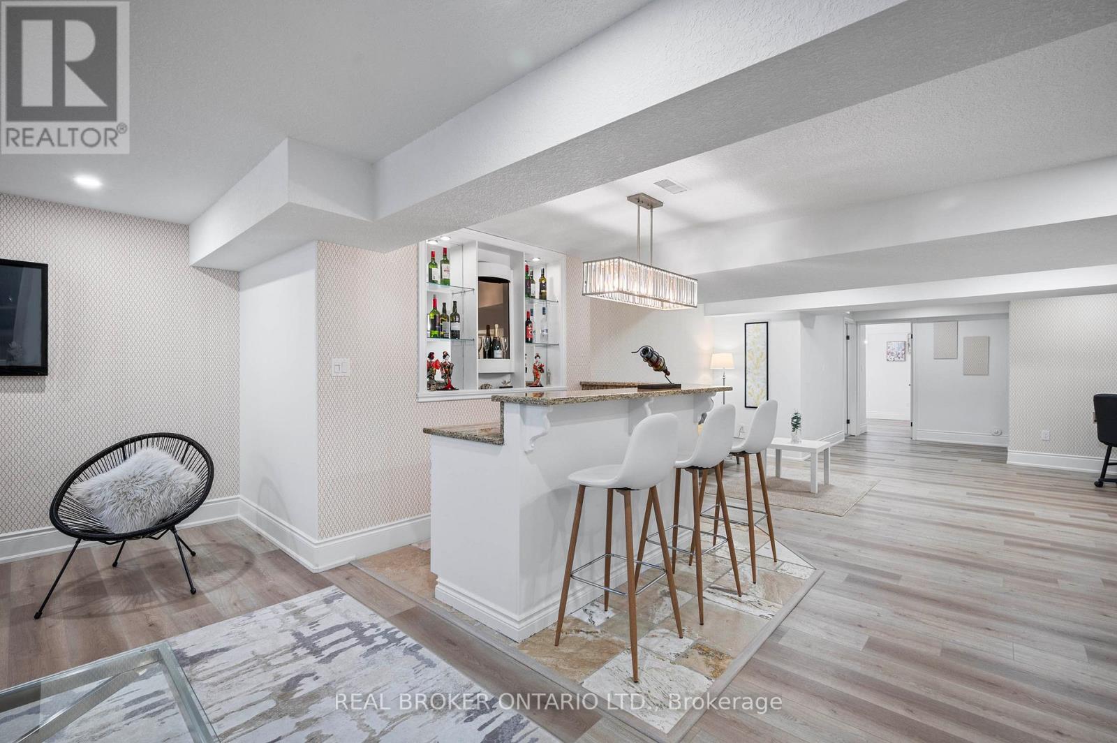 Set on a private cul-de-sac in the prestigious Deer Ridge Estates, 215 Black Maple Court is a fully reimagined custom bungaloft. The residence has undergone a significant capital renovation, including a full interior reconstruction of 5,000 square feet, resulting in a completely brand-new interior featuring premium materials, imported European finishes, custom craftsmanship, and elevated design throughout. This 6-bed, 4-bath home reflects a comprehensive transformation. Situated on a quiet and desirable court with high privacy, beautifully landscaped 68' x 130' pool-size lot, the home features a full stone exterior from front to back. Inside, nearly 5,000 square feet of finished, carpet-free living space unfolds with wide-plank hardwood floors, soaring ceilings, and expansive windows flooding the home with natural light. The designer kitchen features custom cabinetry, high-end appliances, quartz countertops, and an oversized island ideal for entertaining. The main floor primary suite offers a private retreat with a spa-inspired ensuite and in-floor heating, complemented by a 2nd bedroom and a full bathroom. Upstairs, a self-contained in-law suite includes two bedrooms, a full bathroom with in-floor heating, and a loft-style lounge with a beverage station, ideal for multi-generational living. The newly finished lower level continues the thoughtful design with 2 bedrooms, an office, a spacious recreation area, and a custom wet bar. Outdoors, the backyard presents a private setting with full fencing, irrigation, and mature landscaping. Additional highlights include custom millwork and built-ins, designer lighting, main floor laundry, a double-car garage with a separate entrance, a walk-up basement, and driveway parking for four vehicles. Located minutes from Highway 401, Deer Ridge Golf Club, top-rated schools, shopping, and scenic trails, this home offers a rare opportunity to own a thoughtfully executed residence in one of the region's most desirable neighbourhoods. (id:4555)