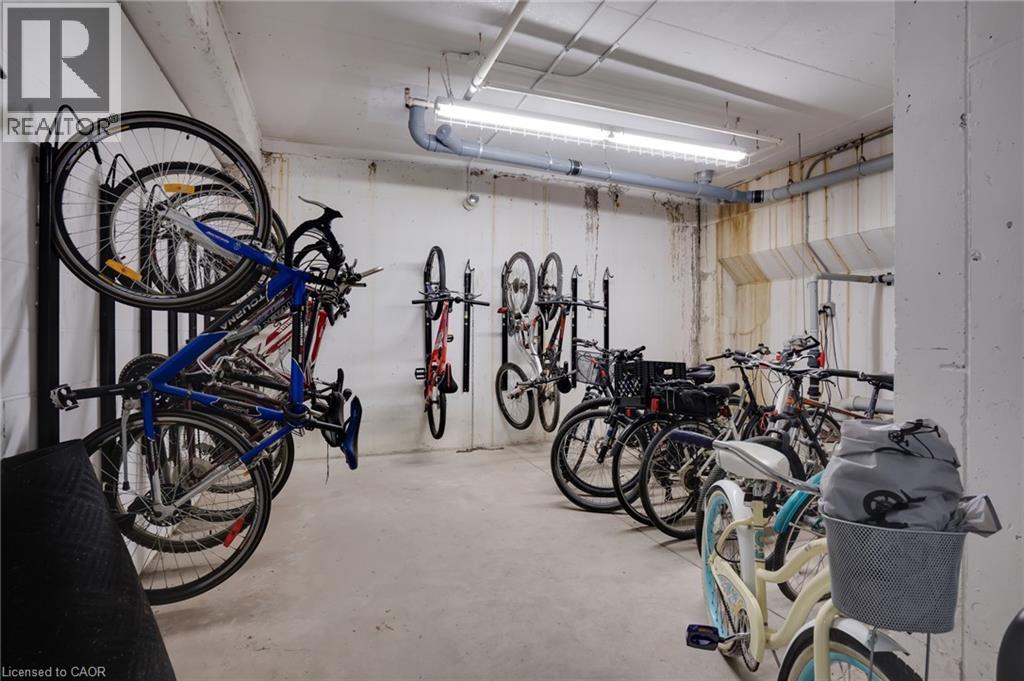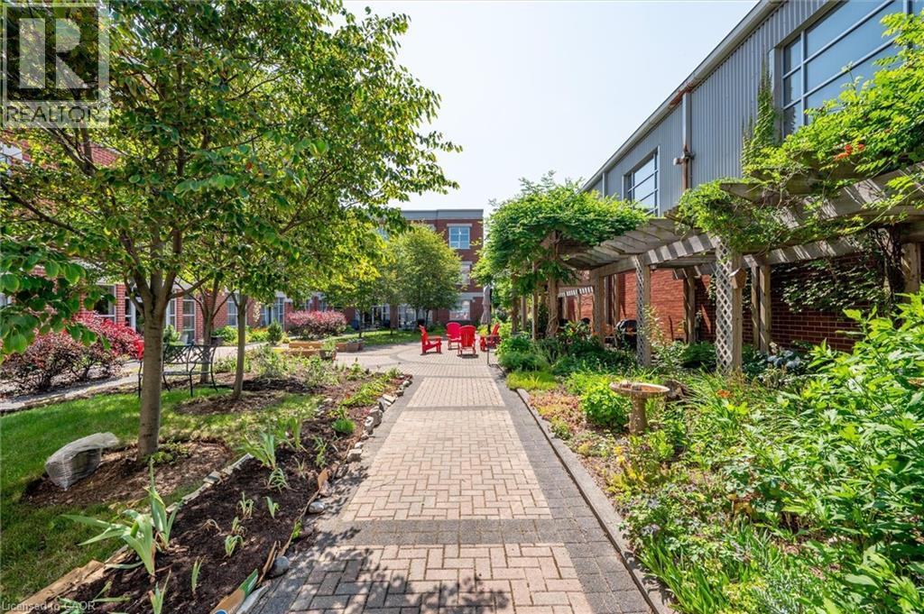 Bright. Fresh. Modern. Those brand new condos too small and too tall? You are going to LOVE the MARKET LOFTS one of Kitchener's most sought-after buildings! This expansive and beautifully designed loft blends modern sophistication along with downtown convenience and is the perfect compromise for those wanting condo living but also wanting space. Located conveniently right next to the Kitchener market, restaurants, shops and the LRT! This spacious condo boasts just under 1,000 sq ft of living space (1 BEDROOM +1 DEN), and features a beautiful open concept layout. Your new home immediately welcomes you into the foyer and your open concept living room featuring soaring ceilings, and floor to ceiling window leading to your Juliette balcony. The modern, freshly painted, eat-in kitchen features white shaker style wood cabinetry, new dishwasher (2025) stainless steel appliances and breakfast bar with granite countertops making entertaining with friends a breeze. Completing this unit is a bright large primary bedroom with ample closet space with custom insert, a den perfect for the in-home office or overnight guests, a freshly painted 4 pc bath with new quartz countertop and in suite laundry. Condo fees include heat and water. The unit has one underground secure parking spot and there also may be the opportunity to rent a second spot through the condo board. The amenities include a party/meeting room, private and picturesque courtyard with community BBQ, underground parking and storage locker. Your ideal urban living experience is right here! Book your showing today! (id:4555)