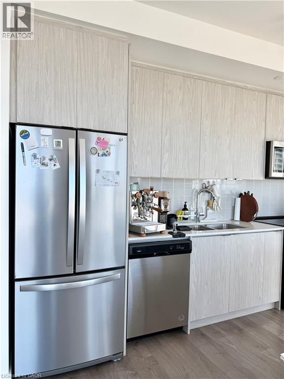 Step inside the contemporary and completely renovated 2-bedroom, 2-bathroom condominium situated at 1909-55 Duke St. W. This outstanding living space spans over 950 square feet and is flooded with natural light pouring in through its expansive windows. With modern stainless steel appliances, sophisticated wood floors, and the added convenience of in-suite laundry, this unit seamlessly blends style and practicality. Enjoy your morning coffee or a sunset over the city on the expansive balcony. The array of amenities includes a club house, concierge, elevator, and exercise room, all contributing to everyday convenience. This unit also comes with a dedicated bike locker, adding practical storage for those who enjoy cycling or commuting. Located in a well-situated building close to transit, shopping, and green space, with convenient access to daily essentials, this property offers an excellent opportunity to live in the heart of Kitchener. (id:4555)