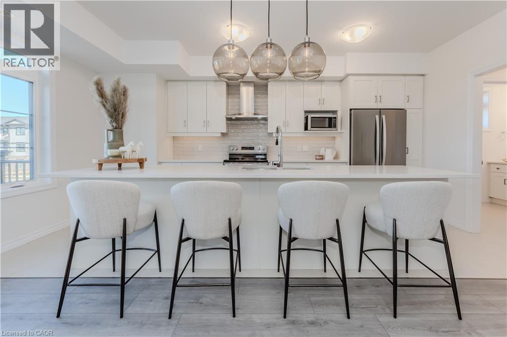 Welcome to 6 Lomond Lane, Kitchener: a beautifully upgraded Emerald model, built by Fusion Homes, Brand new, never lived in, offering 1,415 sq. ft. of thoughtfully designed living space in the highly desirable Huron Village community. This modern 3 bedrooms, 2.5-bathroom home is an ideal choice for families, professionals or investors. The bright open-concept main floor is designed for both everyday living and entertaining, featuring a stunning kitchen complete with quartz countertops, an upgraded undermount sink, flush breakfast bar, elegant under-cabinet lighting, upgraded backsplash, and soft-close cabinetry in both the kitchen and bathrooms. A full six-piece stainless steel electric appliance package adds both convenience and sophistication. Tile and laminate flooring enhance the main living areas, while the stairs and bedrooms are finished with comfortable carpeting. Upstairs, the spacious primary bedroom serves as a relaxing retreat, highlighted by a beautifully appointed ensuite featuring a sleek 24-inch frameless glass shower door and modern finishes. Two additional generously sized bedrooms and a full bathroom provide ample space for family members or guests, complemented by a convenient main-floor powder room. Additional features include an air handling unit heating system, central air conditioning, a water softener, one dedicated parking stall. Situated in the sought-after Huron Village area of Kitchener, this location is truly exceptional. Residents enjoy close proximity to Highway 401, top-rated schools, parks, scenic walking trails, shopping plazas, grocery stores, restaurants, public transit and community recreational facilities. Known for its family-friendly atmosphere and growing amenities, Huron Village continues to be one of Kitchener’s most desirable neighborhoods. This is an outstanding opportunity to own a beautiful new home in a thriving community. (id:4555)
