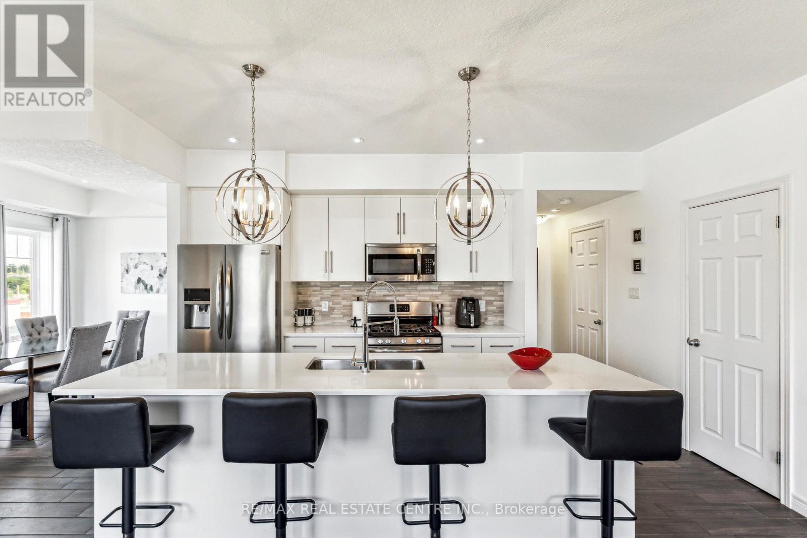 Experience refined living in this former model suite - an exceptional opportunity to own a beautifully upgraded multi-level townhome. Originally designed as the model suite, this residence showcases premium finishes and thoughtful enhancements throughout, offering incredible value for today's buyer. The fully finished main level features a warm and inviting family room, a convenient laundry area, and direct access to the oversized garage, complete with upgraded ceiling storage and a Ring Smart Security System. On the second level, the stunning open-concept kitchen is designed to impress - featuring stainless steel appliances, a spacious island, a gas stove, a wine fridge, and elegant quartz countertops. The adjoining living room with built-in ceiling speakers opens to a private balcony, perfect for entertaining. A dedicated dining area and stylish 2-piece powder room complete this level. Smart home upgrades, including smart light switches, a Nest Thermostat, and a Ring Alarm System, add modern comfort and peace of mind. The third level offers a luxurious primary retreat with a spa-inspired ensuite, double vanity, and generous walk-in closet. A second bedroom and sleek 4-piece bathroom provide flexibility for family, guests, or a home office. At the top, the rooftop terrace delivers breathtaking views, ample storage, and an outdoor water supply - an ideal space to unwind or entertain under the open sky. Ideally located just minutes from Highway 401, with seamless access to Cambridge, Guelph, and Waterloo, and close to top-rated schools, parks, and amenities. Enjoy nearby attractions, including the Grand River and Chicopee Ski & Summer Resort. A rare opportunity to secure a former model home loaded with upgrades - offering exceptional value, lifestyle, and long-term investment potential. Don't miss your chance to own this remarkable property. (id:4555)