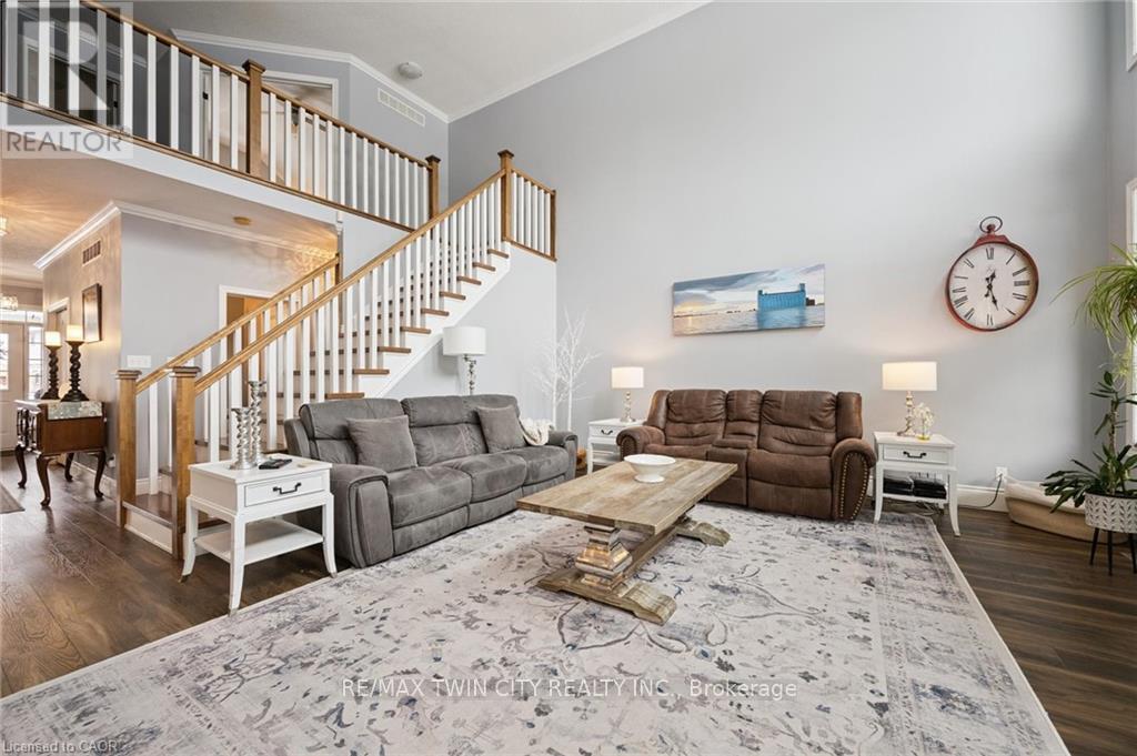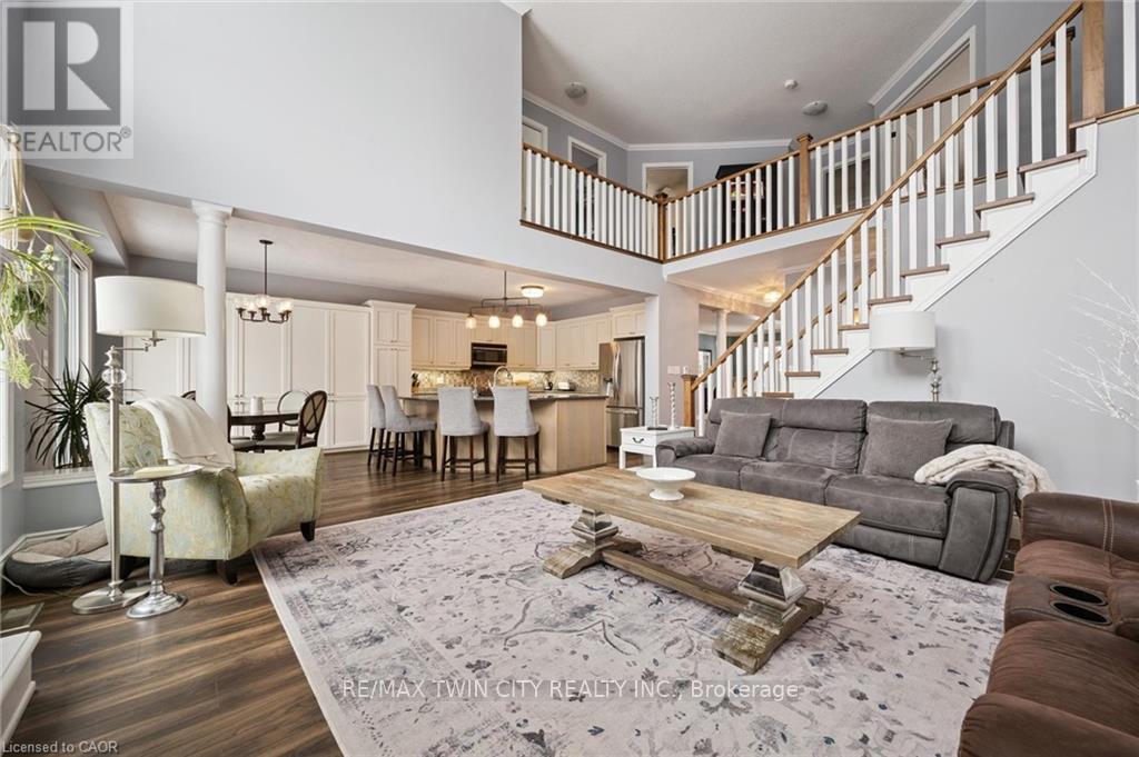 ORIGINAL OWNER. METICULOUSLY MAINTAINED. RARE FULL STONE EXTERIOR. QUIET COURT LOCATION. INGROUND POOL. TURNKEY & READY TO MAKE LIFELONG MEMORIES. Welcome to this stunning 3,000+ sqft. estate, situated on an exclusive, quiet court where neighbours stay for decades. The grand main level impresses with soaring double-height ceilings and massive windows that drench the living area in natural light. This floor plan is designed for modern living, featuring a dedicated main floor den-perfect for a home executive-and a convenient main floor laundry room for effortless daily living. Host elegant dinners in the formal dining room featuring upgraded wainscotting, or prepare gourmet meals in the chef's kitchen complete with granite counters and extended cabinetry. The private backyard oasis is designed for the ultimate host, featuring a saltwater in-ground pool, hot tub, and cozy fire pit area. The upper level offers four spacious bedrooms, including a primary suite with a walk-in closet and 5-piece ensuite, while a second bedroom also features its own walk-in closet. This home is complete with elegant California shutters throughout, a partially finished basement offering additional flexible space, and parking for six cars with no sidewalk to maintain. Located just 5 minutes from the 401, trails, and top-tier schools, this home is truly ready for your next chapter. (id:4555)