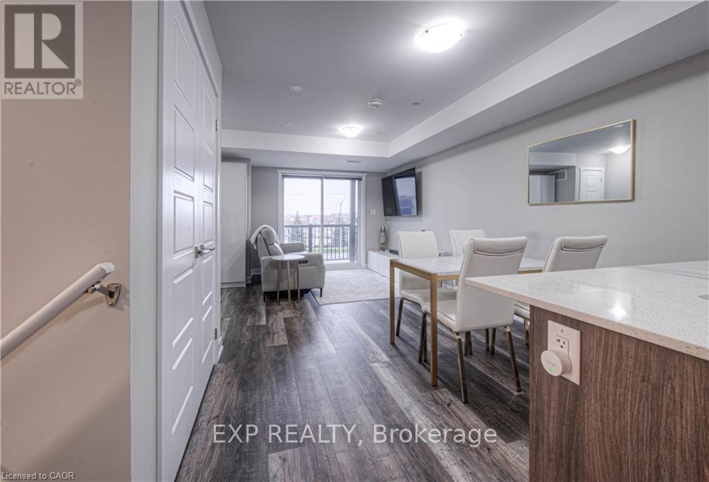 Location, Location, Location! Welcome to 1331 Countrystone Drive Unit #A11, a stylish two-storey stacked townhome in one of Kitchener's most desirable neighbourhoods. Whether you're a first-time buyer, investor, or looking to downsize, this beautifully upgraded unit offers the perfect blend of comfort and convenience. Step inside to find engineered laminate flooring and expansive windows that flood the space with natural light. The open-concept main floor is designed for modern living, featuring a spacious kitchen with quartz countertops, an upgraded breakfast bar, stainless steel appliances, and a large island that overlooks the bright living room and separate dining area, perfect for entertaining. From the living room, step out onto your private balcony with views of The Boardwalk. A convenient two-piece powder room and generous closet space complete the main level. Upstairs, the oversized primary bedroom offers a large walk-in closet and access to a second private balcony, an ideal spot to enjoy your morning coffee. A four-piece bathroom and second-floor laundry provide added practicality and ease. Situated in the highly sought-after Ira-Needles neighbourhood, directly across from The Boardwalk Shopping Centre, you'll enjoy unparalleled access to shopping, restaurants, grocery stores, a gym, and a movie theatre. With easy highway access and just a short drive to Uptown Waterloo, this location truly can't be beat. (id:4555)