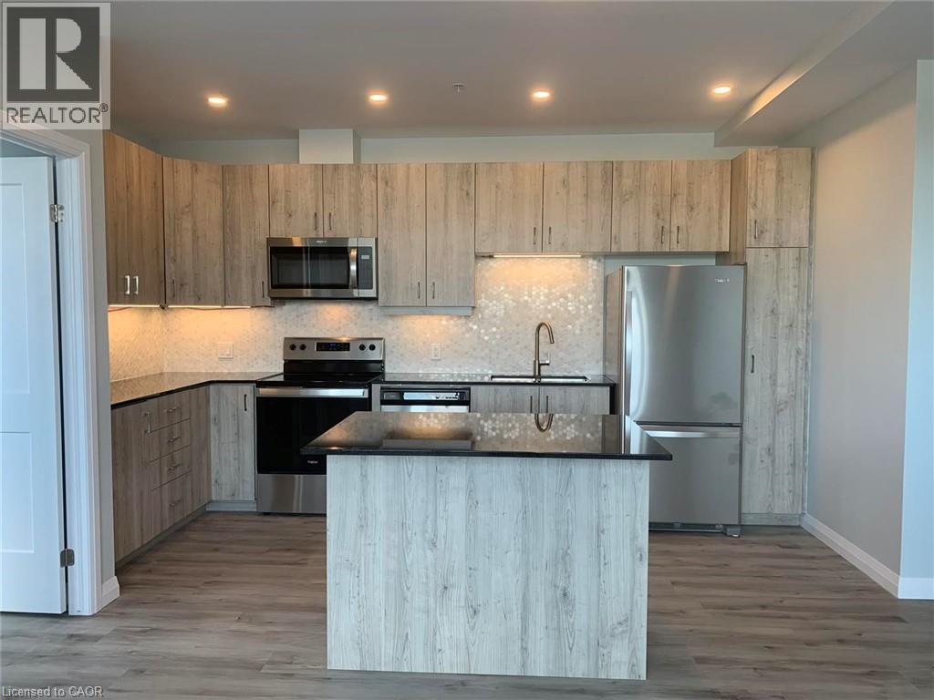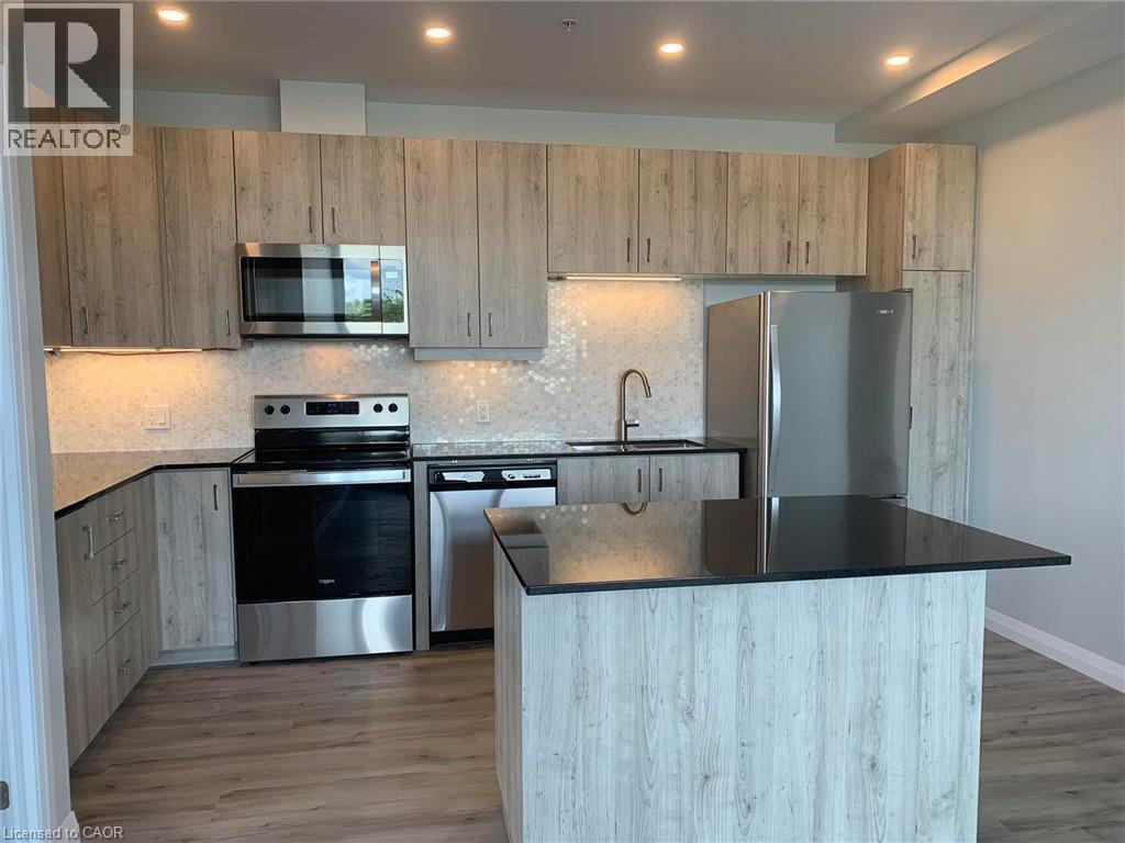 Available May 1st. Amazing opportunity to live in this nicely appointed, downtown condo with a 530sq ft. private terrace. This 2 bed, 2 bath, 1063 sq ft unit is located in Tower 2 of the Garment Street Condos in the heart of the Innovation District. Features include luxury vinyl plank flooring throughout, cool, crisp neutral paint colours, built in closet organizers in every closet, sleek modern kitchen with island, granite countertops and beautiful backsplash. Stainless steel appliances included for tenants use. Primary bedroom has lots of natural light, double closet and 3 piece ensuite bathroom. Walkout from the living room to an enormous private terrace that wraps around the whole unit and offers a panoramic view of downtown Kitchener. A second bedroom, full bathroom, custom blinds throughout, insuite laundry and a storage room complete the unit. 1 underground parking spot and internet is also included. The building amenities include an Exercise Room, Media Room, Party Room, Roof Top Deck/Garden, Bike Storage. Walking distance to the LRT, the School of Pharmacy, GOOGLE plus much more. Beautiful Victoria Park is a short walk and hosts many community events and festivals throughout the summer. Downtown Kitchener offers great restaurants, bars, pubs, entertainment and shopping. GO and VIA are also nearby for commuting into TO. $2700/month plus hydro, 12 month lease, no smoking, no pets. (id:4555)