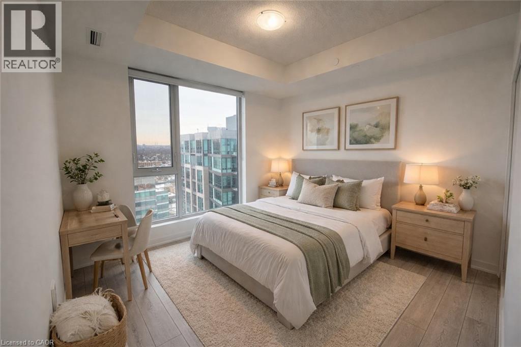 A beautifully designed 2-bedroom, 2-bathroom condo soaring above downtown Kitchener in the highly desirable Young Condos. This sun-filled residence offers an open-concept layout with a modern kitchen, stainless steel appliances, and floor-to-ceiling windows showcasing impressive west-facing city views. The primary bedroom features a walk-in closet and private ensuite, while the second bedroom provides versatile space for guests, a home office, or additional living needs. Step out onto your private balcony and take in the dynamic urban skyline. Residents enjoy exceptional amenities including a fitness center, rooftop walking track, party room, BBQ area, and bike storage. Underground parking is included, with transit, dining, shopping, and entertainment just steps away for effortless city living. (id:4555)