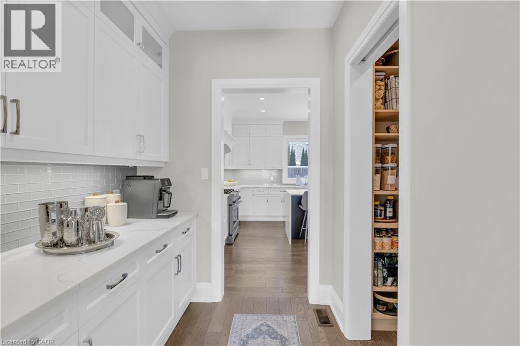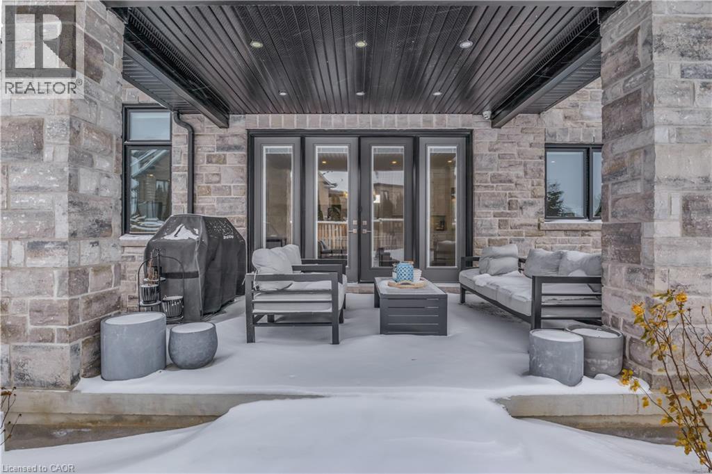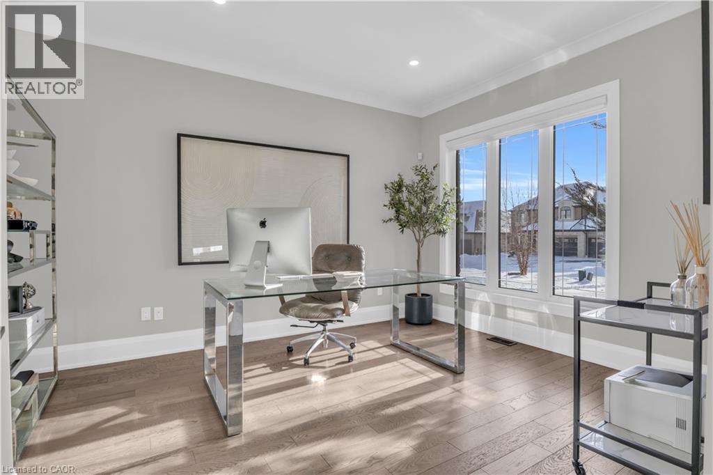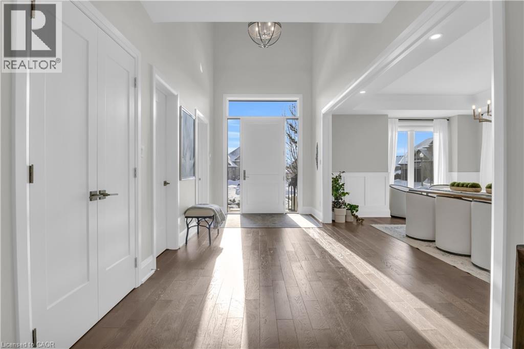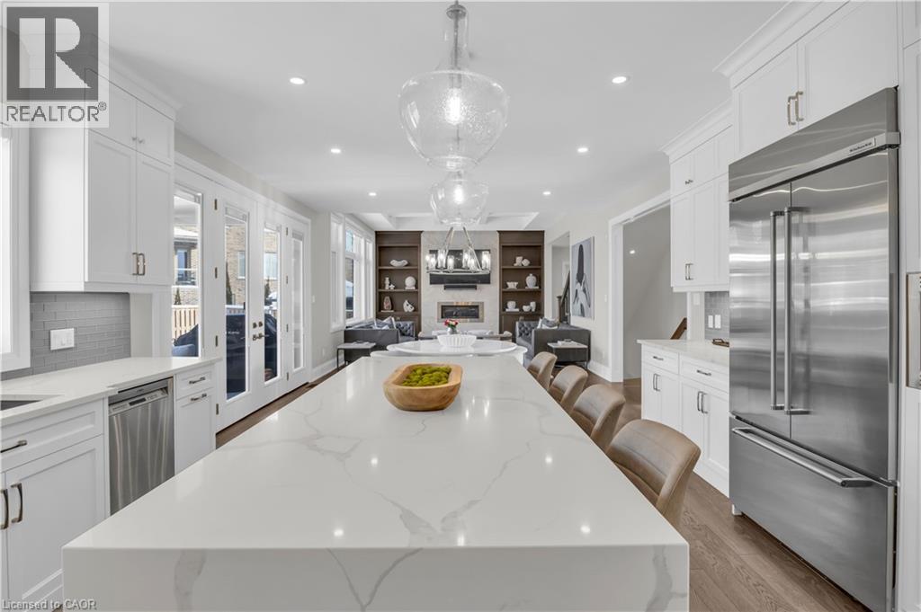 Over 5,700 sq ft of finished living space and located on a large 0.25-acre lot in the sought-after Deer Ridge neighbourhood. Tucked away on a quiet court, this custom-built home offers a comfortable layout with carefully selected finishes throughout. The main entry opens into a bright two-storey foyer, with a formal dining room nearby that connects to the kitchen through a practical servery and pantry. The kitchen features white cabinetry, quartz countertops, a waterfall island, tiled backsplash, a built-in refrigerator, and a dual-fuel range with an oversized hood. The breakfast area includes French doors that open to a covered back porch, making it easy to enjoy the large outdoor space. The family room sits just off the kitchen and includes high coffered ceilings, a large picture window, and a gas fireplace with a floor-to-ceiling mantel. A powder room, mudroom with access to the triple car garage, and a spacious home office complete the main level. The upper floor offers four generously sized bedrooms. Two share a five-piece Jack and Jill bathroom, one includes its own ensuite and walk-in closet, and the primary bedroom features a large walk-in closet and an ensuite with a soaker tub and walk-in shower with rain head. Laundry is also conveniently located on the upper level, and all bathrooms are equipped with heated floors for added comfort. The basement benefits from very high ceilings and large above-grade windows filling the space with natural light. It is currently used as a recreation room, an additional bedroom, and a three-piece bathroom. Additional highlights include smart lighting throughout the home and automatic window coverings, offering added convenience and efficiency. Outside, the home is finished with a stone façade and includes an exterior air and weather barrier system, in-ground irrigation, a security system, and a water conditioning system. This is a great opportunity to settle into one of the most sought-after areas in Kitchener. (id:4555)