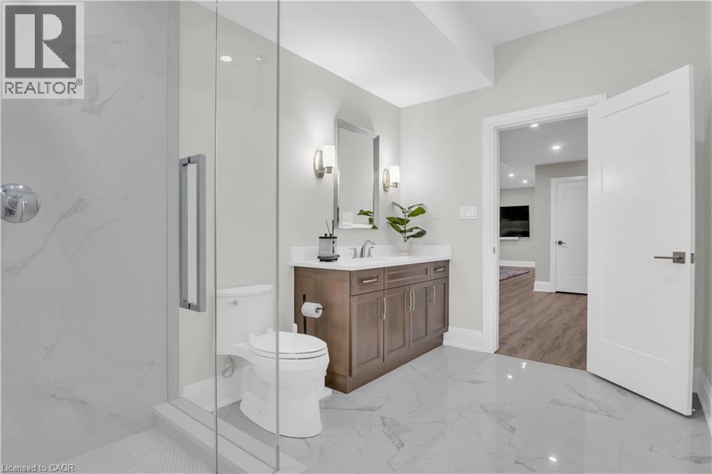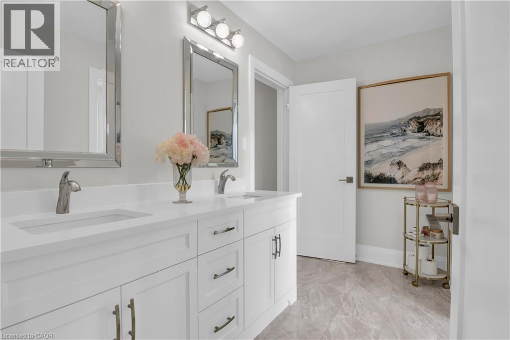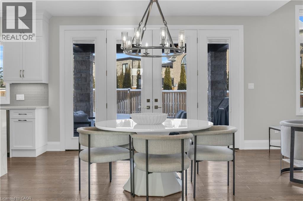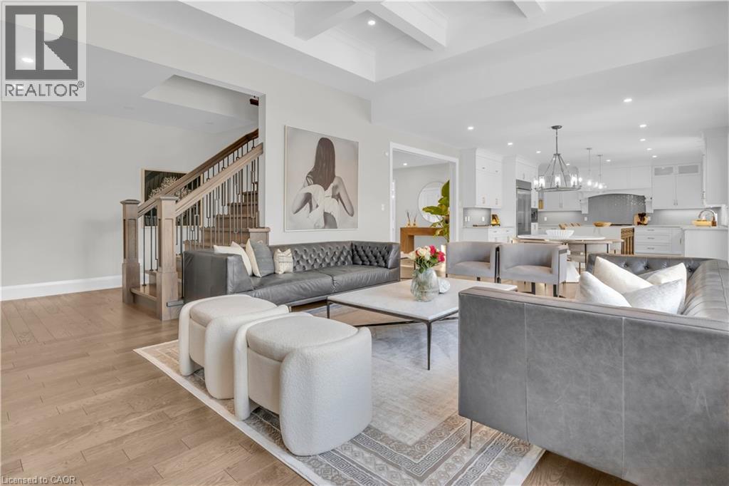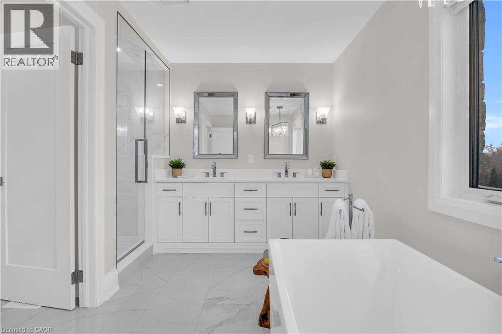 Over 5,700 sq ft of finished living space and located on a large 0.25-acre lot in the sought-after Deer Ridge neighbourhood. Tucked away on a quiet court, this custom-built home offers a comfortable layout with carefully selected finishes throughout. The main entry opens into a bright two-storey foyer, with a formal dining room nearby that connects to the kitchen through a practical servery and pantry. The kitchen features white cabinetry, quartz countertops, a waterfall island, tiled backsplash, a built-in refrigerator, and a dual-fuel range with an oversized hood. The breakfast area includes French doors that open to a covered back porch, making it easy to enjoy the large outdoor space. The family room sits just off the kitchen and includes high coffered ceilings, a large picture window, and a gas fireplace with a floor-to-ceiling mantel. A powder room, mudroom with access to the triple car garage, and a spacious home office complete the main level. The upper floor offers four generously sized bedrooms. Two share a five-piece Jack and Jill bathroom, one includes its own ensuite and walk-in closet, and the primary bedroom features a large walk-in closet and an ensuite with a soaker tub and walk-in shower with rain head. Laundry is also conveniently located on the upper level, and all bathrooms are equipped with heated floors for added comfort. The basement benefits from very high ceilings and large above-grade windows filling the space with natural light. It is currently used as a recreation room, an additional bedroom, and a three-piece bathroom. Additional highlights include smart lighting throughout the home and automatic window coverings, offering added convenience and efficiency. Outside, the home is finished with a stone façade and includes an exterior air and weather barrier system, in-ground irrigation, a security system, and a water conditioning system. This is a great opportunity to settle into one of the most sought-after areas in Kitchener. (id:4555)