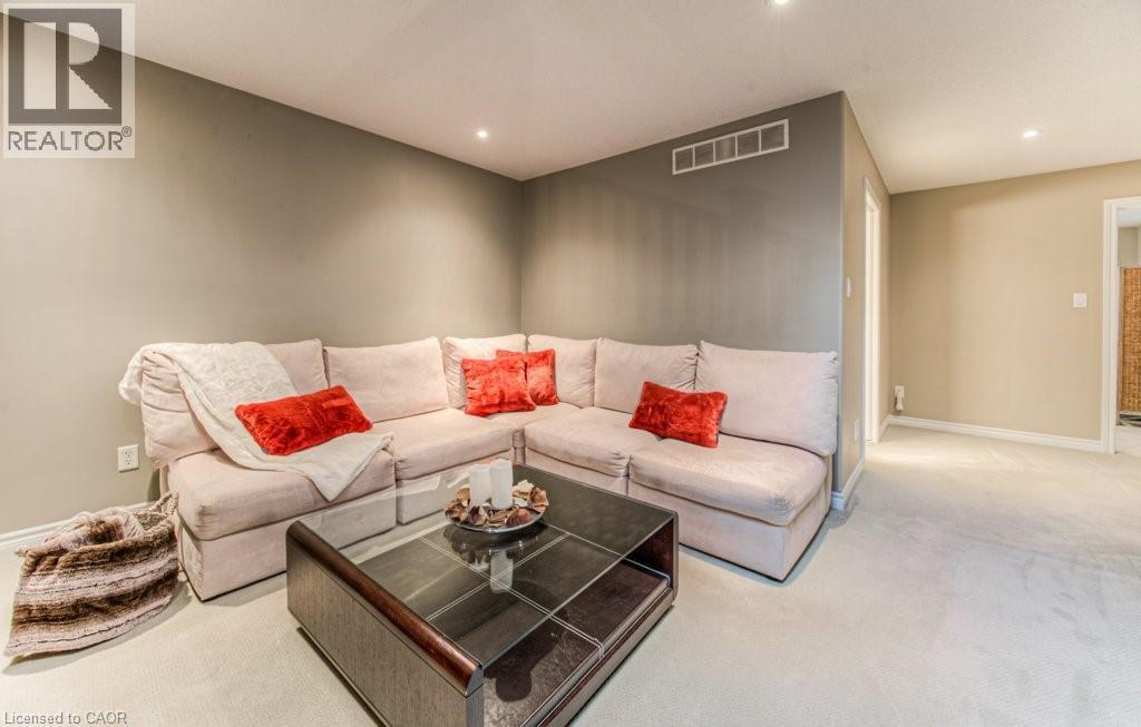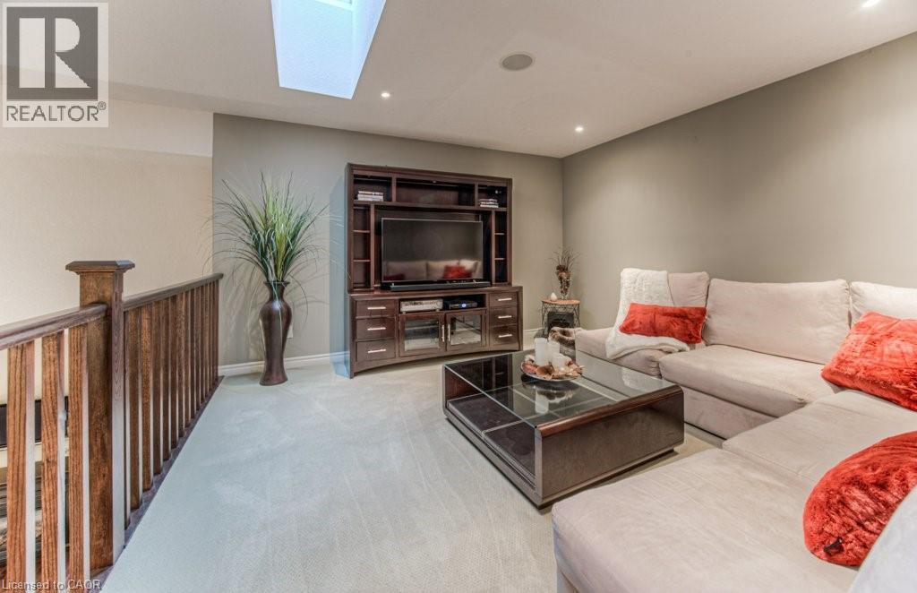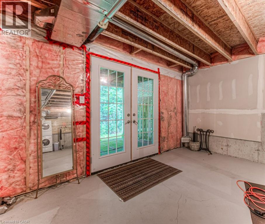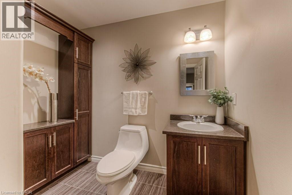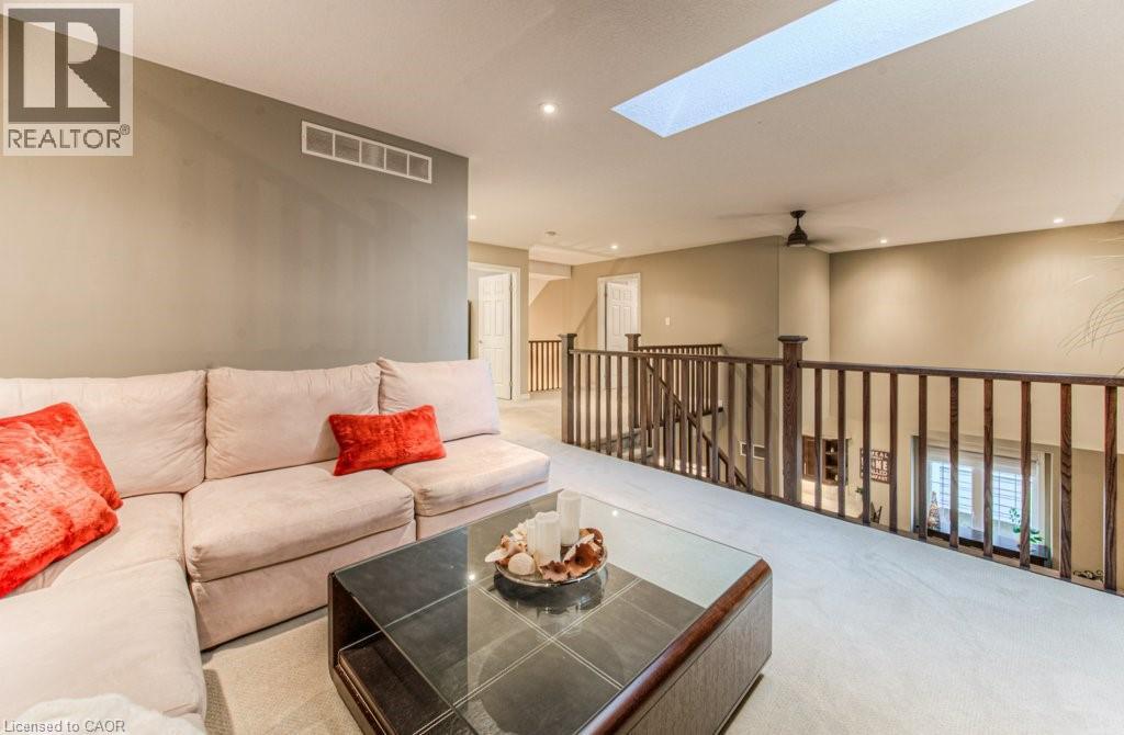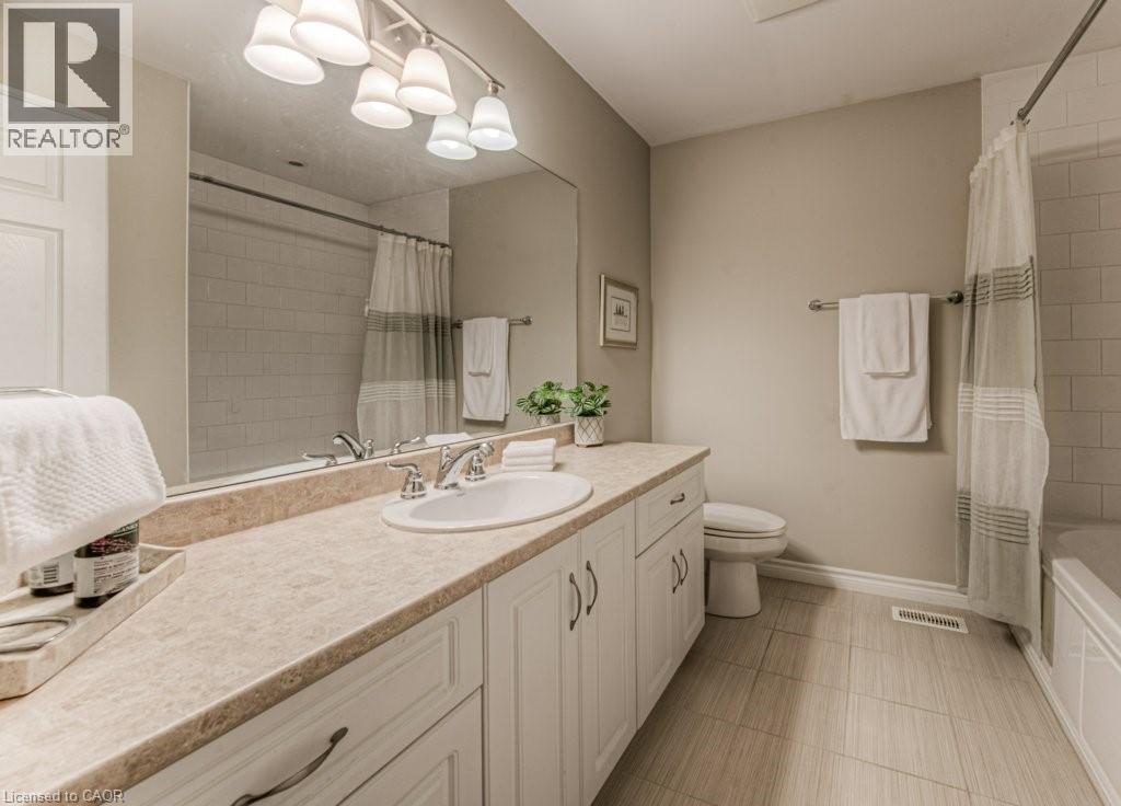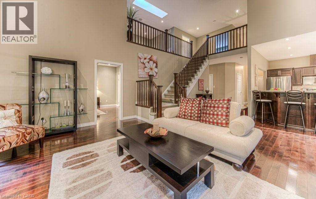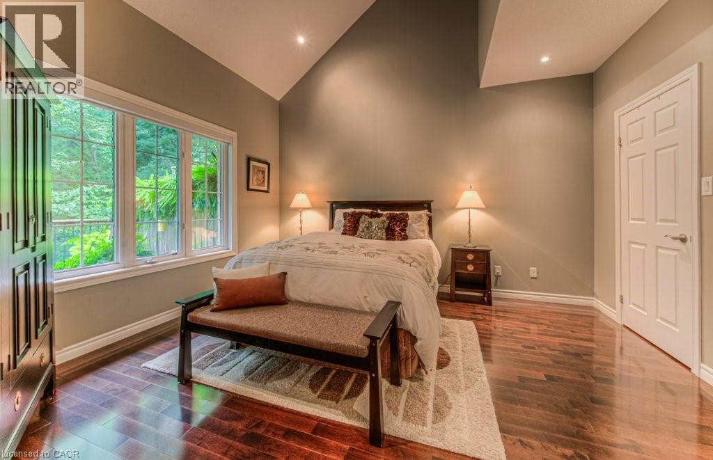 Customized, original owner Aspen Woods bungaloft end unit townhouse condo with double garage, main floor primary suite backing on to the lush forest of Natchez Woods in southeast Kitchener. Welcoming covered porch is ready to sit & share coffee with a neighbour. Interior features include hardwood flooring throughout the main level with upgraded title in the bathrooms and kitchen. The dining room with coffered ceiling is suitable for use as an office/den. Fabulous kitchen with totally wide open concept view to the living room, the only unit in the complex with this expanded feature. Thick granite counters with curved breakfast bar, stainless appliances, double drawer dishwasher, Kohler cast iron sink with Grohe faucet plus three lazy Susan corner cupboards all combine to impress with above average working space for meal prep & entertaining. The spacious living room area with gas fireplace features a vaulted ceiling with numerous pot lights and side windows to enhance the space. A garden door walkout to the extended rear deck is a convenient access. Treat yourself to this primary bedroom suite with vaulted ceiling, walk-in closet, and enlarged 3pc ensuite having a clean tiled walk-in shower. The triple window view of the scenic trees will greet you each morning as you wake up in bed. Up the stairs to the family room/loft where the whole home audio/video system with cabinet is ready for you to relax and be entertained. Visiting grandchildren & guests will love the additional two bedrooms and 4pc bathroom with Kohler deep soaker tub too! Though the basement level with walkout to ground level is unfinished it does offer substantial storage space and the opportunity to complete to your quality level & design in the future. Walking trails. shopping amenities, access to the Breslau International Airport, Chicopee Ski Hill and other venues makes this a wonderful area to experience and explore. A Natural move for those looking to downsize with reasonable fees. (id:4555)