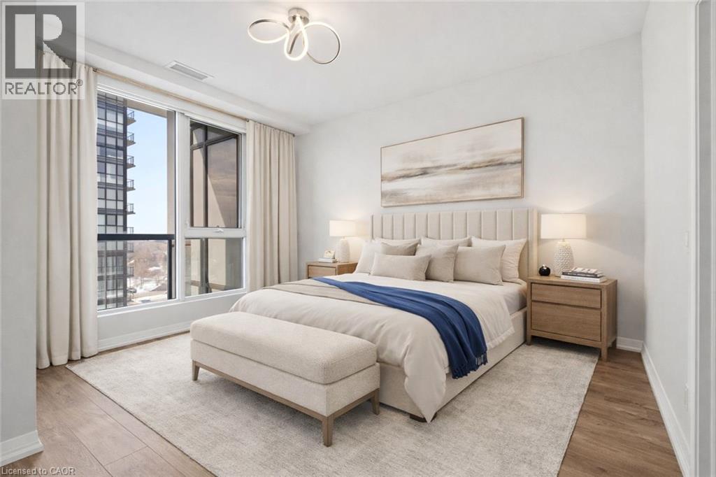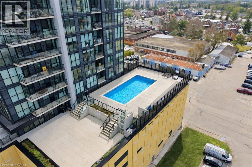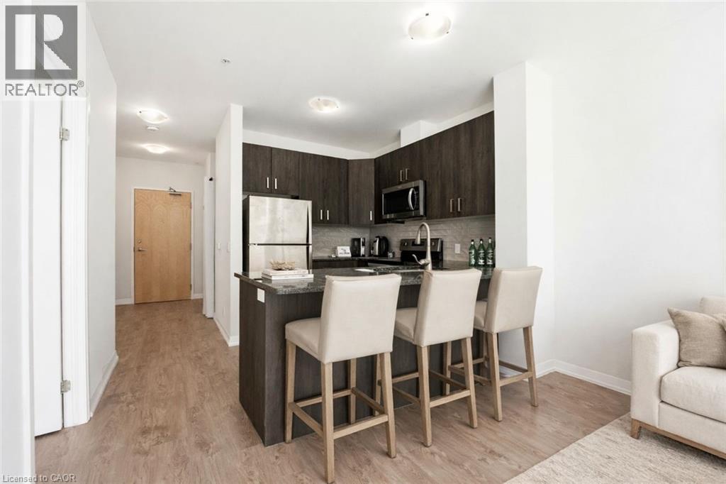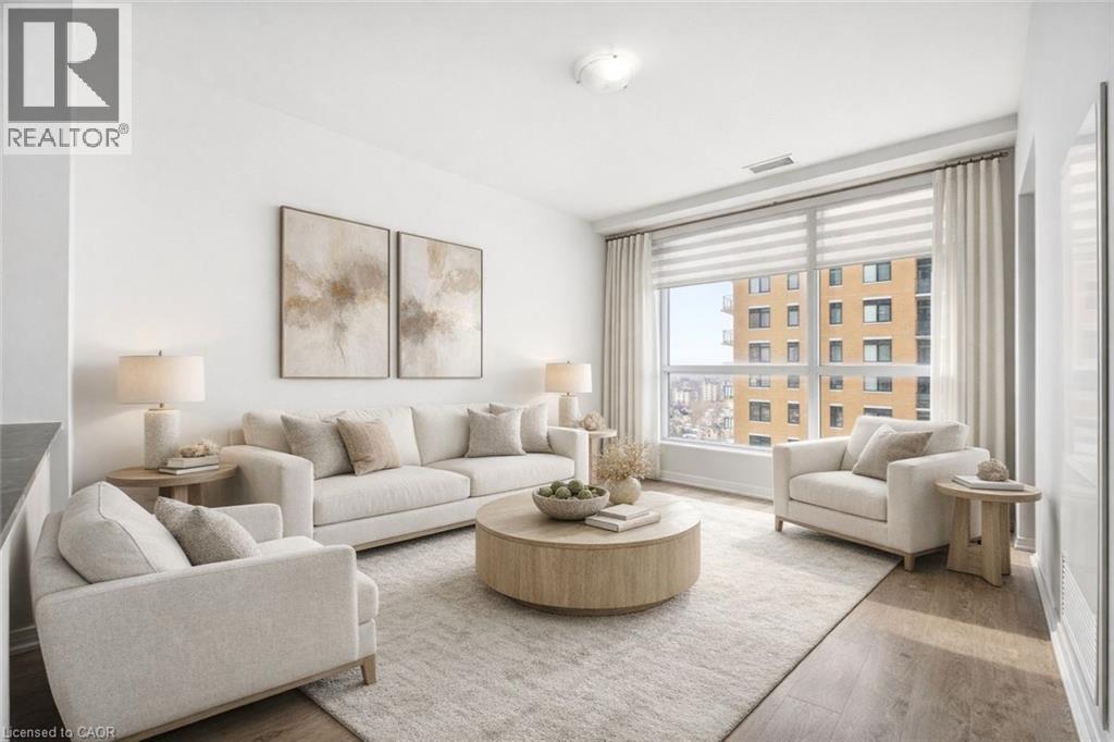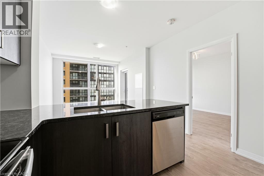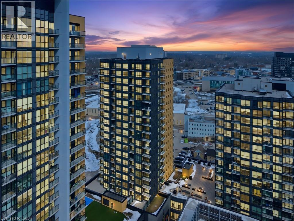 Perched high above the vibrant Kitchener skyline, this ONE-BED + DEN condo at 104 Garment St, Unit 1206 offers an exceptional opportunity in Downtown Kitchener’s most sought-after addresses. BRIGHT OPEN-CONCEPT LAYOUT enhanced by PREMIUM FLOORING AND FRESHLY PAINTED neutral tones. The contemporary kitchen offers GENEROUS GRANITE COUNTERTOPS, STAINLESS STEEL APPLIANCES, A TASTEFUL TILE BACKSPLASH, & a breakfast bar that overlooks the main living area. The spacious living room is flooded with natural light from IMPRESSIVE FLOOR-TO-CEILING WINDOWS and offers direct access to a private balcony overlooking the terrace below. The PRIMARY BEDROOM IS BOTH COMFORTABLE AND FUNCTIONAL, featuring a large walk-in closet and a GENEROUS WINDOW FRAMING ELEVATED CITY VIEWS. A versatile den provides the perfect space for a home office, reading nook, or guest area, also offering a full 4-piece bathroom, convenient in-suite laundry, and additional storage. Residents of this highly desirable building enjoy an impressive array of PREMIUM AMENITIES INCLUDING A ROOFTOP TERRACE with stunning city views, a fully equipped fitness centre, private theatre room, party room, and a stylish media lounge—perfectly suited for today’s dynamic professional lifestyle. The unit also comes complete with one underground parking space for added convenience. Ideally situated in the heart of Downtown Kitchener’s Innovation District, this prime location places you just steps from the ION LRT, Grand River Hospital, Victoria Park, and an incredible selection of restaurants, cafés, and boutique shops. With major employers such as Google and the thriving tech hub nearby, THIS LOCATION IS PERFECTLY POSITIONED FOR PROFESSIONALS SEEKING BOTH CONNECTIVITY AND LIFESTYLE. Offering the perfect blend of modern design, functional living space, and unbeatable downtown convenience, this impressive condominium is a remarkable opportunity to enjoy the very best of city living. (id:4555)