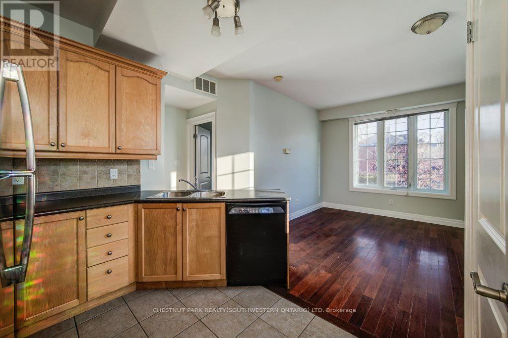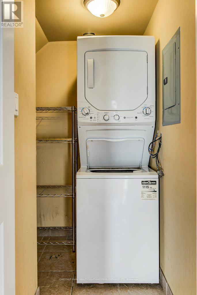 Welcome to Unit 201 at 555 King Street East in Kitchener - a bright and stylish 1-bedroom condo offering comfort, flexibility, and an unbeatable location. Hardwood floors flow throughout the unit, creating a warm and cohesive feel, while soaring 9-foot ceilings and large windows fill the open-concept living and dining area with natural light. The kitchen features matching hardwood flooring, warm maple cabinetry, and sleek black appliances, including a gas range - perfect for everyday living and entertaining. The spacious bedroom and well-appointed 4-piece bathroom are thoughtfully tucked away at the back of the unit for added privacy. Additional conveniences include in-suite laundry with a stackable dryer and washing machine hookup, as well as a hallway closet housing the mechanical systems for easy access. Ideally located within walking distance to downtown Kitchener's shops, restaurants, and the LRT line, this condo offers exceptional urban convenience. A fantastic opportunity for first-time buyers, investors, or those looking to downsize. (id:4555)