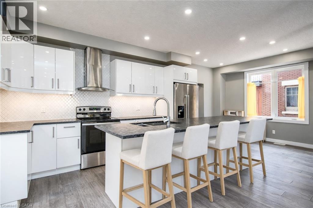 Welcome to 15 Herlan Avenue — where the energy of downtown living meets the comfort of a beautifully updated detached home. This stunning 4 bedroom, 3 bathroom home is just minutes from the Google building, LRT, Kitchener GO Train Station, Communitech and the historic Tannery District. Restaurants, coffee shops, entertainment, and the beauty of Victoria Park are all within walking distance. Step inside to a bright open-concept main floor featuring 9-foot ceilings, engineered hardwood flooring, and over 50 LED pot lights. Large windows fill the space with natural light, creating a warm and inviting atmosphere for everyday living and entertaining. The heart of the home is the open-concept kitchen and living area. The kitchen features wall-to-wall cabinetry, granite countertops, a stylish backsplash, stainless steel appliances, and an impressive 8-foot island with generous workspace and seating. Flowing into the living room, the space is anchored by a cozy electric fireplace. The main floor also includes a modern 4-piece bathroom, mudroom, and convenient laundry area. Upstairs you will find three spacious bedrooms including the primary suite with its own 3-piece ensuite and walkout to a private deck overlooking the fully fenced backyard. An additional 3-piece bathroom serves the remaining bedrooms, while the finished attic provides versatile bonus space ideal for a playroom, games room or home office. The finished basement with a separate entrance offers additional living space with a large rec room, another bedroom and workout area. Outside, the property features a rare 166-foot deep lot, large deck, fully fenced backyard, single detached garage and driveway parking for four or more vehicles. Extensively updated in recent years with updated plumbing, electrical, ductwork, furnace and air conditioning, making it truly move-in ready. A rare opportunity to own a renovated detached home steps from Kitchener’s thriving tech hub and downtown amenities. (id:4555)