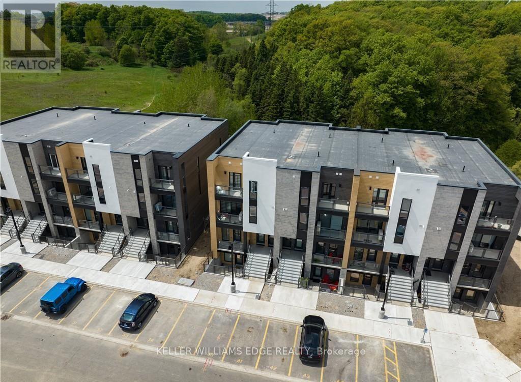 Rare corner unit in the highly sought-after Huron Park community, just 20 minutes from University of Waterloo and Wilfrid Laurier University, and only 10 minutes to Conestoga College. This bright and spacious 2-bedroom, 3-bathroom home comes with two parking spaces and features a carpet-free interior, creating a modern look with easy maintenance. Approximately 1,360 sq. ft. of thoughtfully designed living space showcases a functional layout ideal for comfortable everyday living. Enjoy beautiful ravine-facing views of the Huron Natural Area from multiple areas of the home, creating a peaceful and scenic setting. Built with Energy Star certification and enhanced with numerous upgrades, the home features 9-ft ceilings, a functional open-concept layout, and large windows that fill the space with natural light. The modern kitchen is finished with quartz countertops, a ceramic backsplash, stainless steel appliances, and a spacious island with breakfast bar, perfect for both everyday living and entertaining. Upstairs, the primary bedroom includes a walk-in closet, a private ensuite bathroom, and a balcony overlooking the lush ravine and greenspace. All bathrooms are finished with granite countertops and undermount sinks. Additional highlights include in-suite laundry and ample storage. Ideally located near RBJ Schlegel Park, and close to schools such as Jean Steckle Public School and Janet Metcalfe Public School, with convenient access to shopping, dining, and everyday amenities. (id:4555)