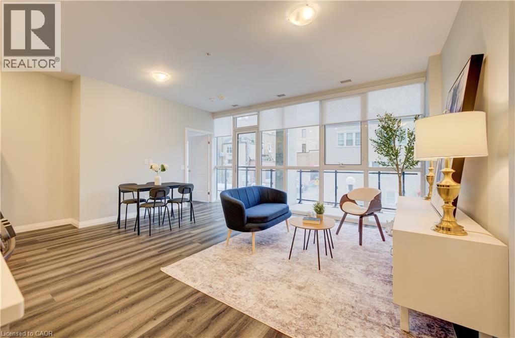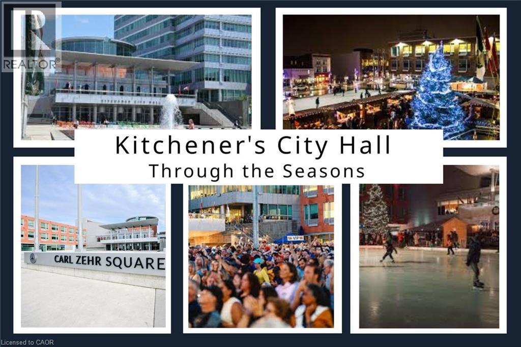 Welcome to Charlie West—where luxury meets lifestyle in the heart of downtown Kitchener. This rare 2-bedroom + den, 2-bath podium suite offers 1,125 sq ft of bright, modern living with an oversized balcony. Floor-to-ceiling windows fill the space with natural light, highlighting sleek finishes and a thoughtfully designed open layout. The chef-inspired kitchen features granite countertops, stainless steel appliances, designer cabinetry, and ample prep space—perfect for both everyday living and entertaining. Unwind in the spacious primary suite with direct balcony access. A second full bathroom ensures comfort for guests or family. Enjoy resort-style amenities including concierge service, fitness and yoga studios, stylish lounges, landscaped terrace with BBQs, guest suite, pet facilities, and more. Located steps from Victoria Park, ION LRT, Google HQ, and the best of downtown living—with a Walk Score of 99. Don’t miss this opportunity to own in one of Kitchener’s most sought-after buildings. (id:4555)