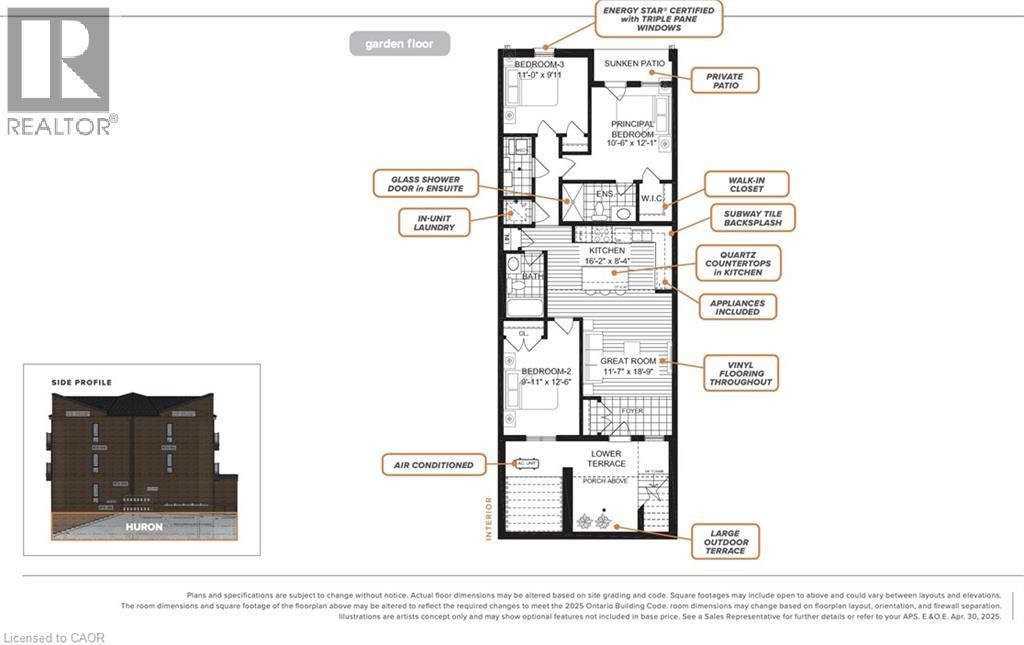 GET YOUR FIRST MONTH RENT FREE WHEN YOU SIGN A 13-MONTH LEASE! TWO PARKING SPOTS AVAILABLE. New tenants receive exclusive discounts on Rogers TV, internet and mobile services. BRAND NEW ENERGY STAR® CERTIFIED two and three bedroom stacked townhomes near Sunrise Shopping Centre with flexible move-in. Reserve your favourite unit today and move in anytime from now through July 1. Welcome to THE HURON, a 3 bed, 2 full bath suite with high ceilings, premium finishes, and a bright open concept layout. The brand new kitchen boast quartz countertops, subway tile backsplash, full-size stainless steel appliances, and an oversized island with breakfast bar seating. Enjoy the convenience of in-suite laundry and central air conditioning/heat for year round comfort. Enjoy the private balcony off the master bedroom, offering beautiful views of the pond and countryside. Just steps away, Trussler Woods features peaceful trails—perfect for walking, jogging, and enjoying the outdoors. EV chargers and visitor parking available. Pet-friendly community. Located in a designated school bus zone, offering added convenience for families. Enjoy quick access to Highways 7/8. Actual units may vary in layout; interior finishes are consistent. Some photos may be virtually staged. Tenant responsible for utilities. Landlord responsible for furnace filter replacements and water softener maintenance. Book a tour to explore all available suites! (id:4555)