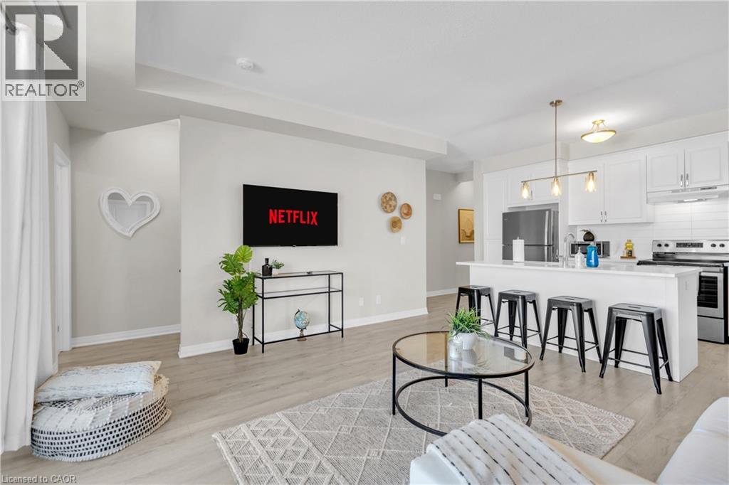 Welcome to 1F-155 Thomas Slee Drive, an exceptional and meticulously maintained stacked townhouse nestled in the heart of the highly desirable Doon Community. This modern, move-in-ready, only a few years young contemporary style home offers an outstanding opportunity for first time Home buyers or investors. Step inside and be greeted by a thoughtfully designed main level. The spacious, chef-inspired kitchen features stainless steel appliances, an abundance of cabinetry, elegant quartz countertops and a large center island that serves as the heart of the home. The bright and expansive living area, filled with natural light offers direct access to an oversized balcony. This private outdoor retreat is perfect for morning coffee, evening relaxation or simply soaking in the peaceful views. A convenient powder room completes this level. The upper level offers a well-planned layout designed for comfort and privacy. You’ll find 2 generously sized bedrooms, each with its own private balcony, creating rare and inviting personal outdoor spaces. The primary bedroom is a true retreat, complete with a walk-in closet and a stylish 3-piece ensuite bathroom. A modern main bath and a conveniently located laundry room complete the upper floor. This beautiful townhouse showcases modern finishes, excellent natural light and a smart, efficient layout throughout with very low maintenance fee. Additional highlights include one assigned parking space, along with multiple first-come, first-served parking spots, offering convenience and flexibility for parking. Located in a prime Doon location, this home is just steps away from Groh Park, Groh Public School, scenic walking trails, and offers quick access to Highway 401, along with nearby restaurants, shopping and everyday amenities. Enjoy a vibrant community setting while staying connected to everything you need. An exceptional home in an unbeatable location, don’t miss this opportunity. Book your private showing today! (id:4555)