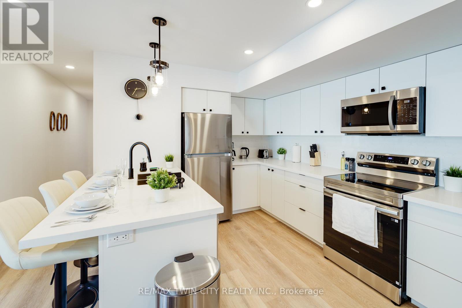 Brand-new 2-bedroom stacked townhouse offering modern, comfortable living in a great Kitchener location. This bright 1000 sq. ft. home features an open-concept layout with 9-foot ceilings, large windows, and quality finishes throughout. The modern kitchen includes quartz countertops, stainless steel appliances, a dishwasher, and ample cabinet space, while the spacious living area opens onto a private balcony for added outdoor enjoyment. The unit also features ensuite laundry, a personal thermostat, a stylish bathroom, durable vinyl flooring, and plenty of natural light throughout. Free outdoor parking is included, and hot water tank is included in the rent. Conveniently located close to downtown Kitchener, parks, shopping, transit, and major highways. Move in today! (id:4555)
