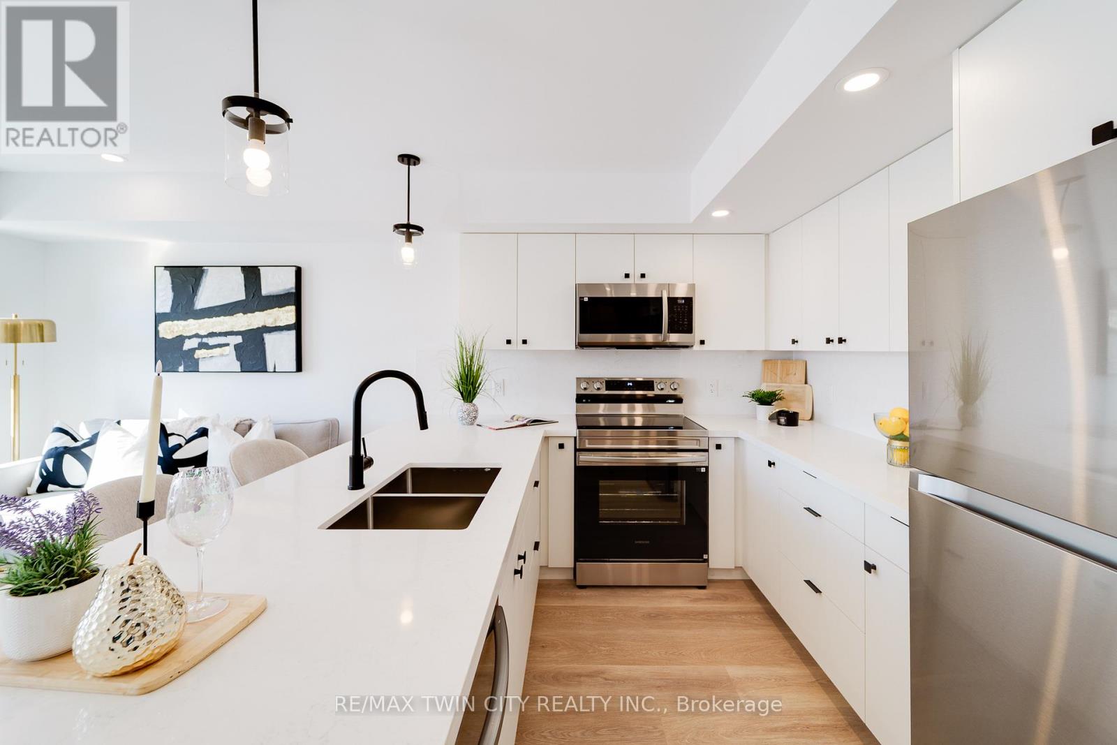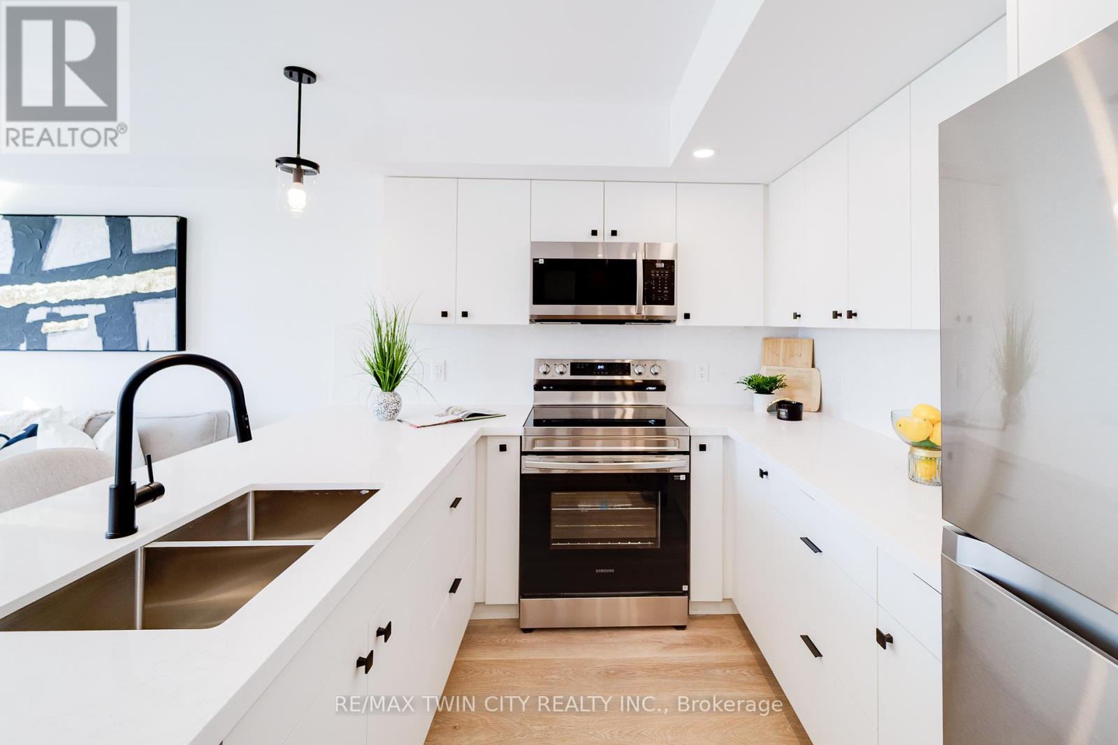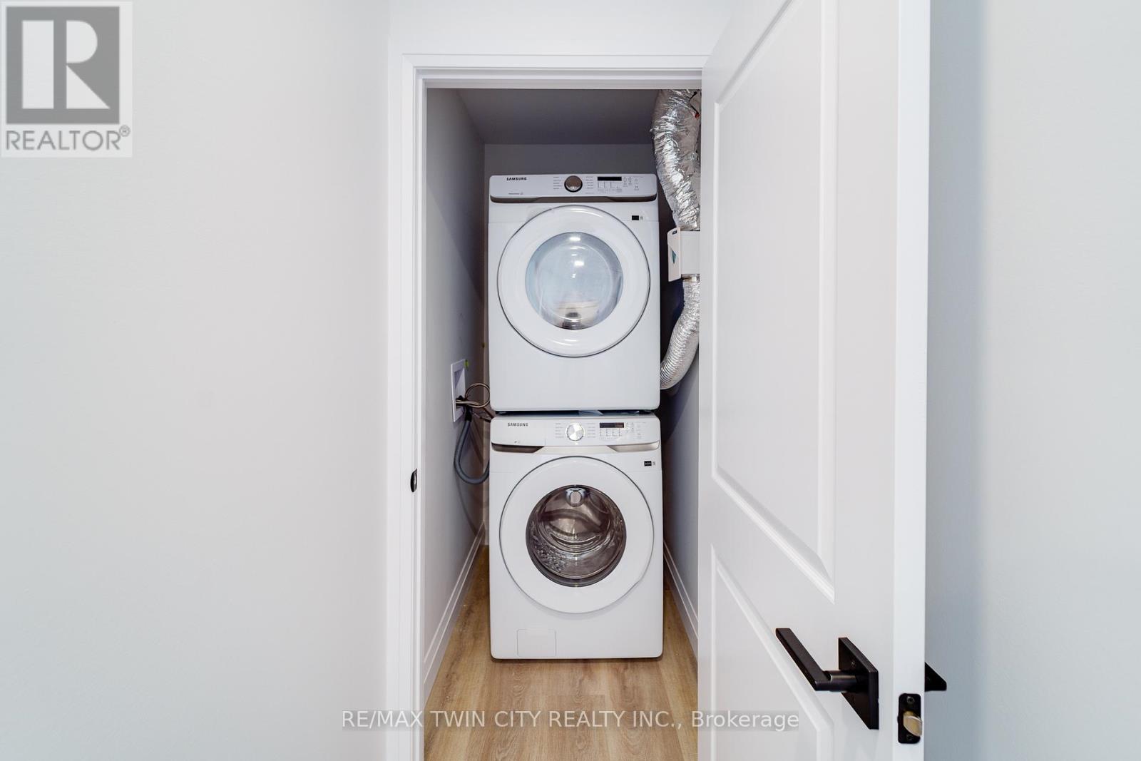 Brand-new 3-bedroom stacked townhouse offering spacious, modern living in a great Kitchener location. This bright 1,200 sq. ft. home features an open-concept layout with 9-foot ceilings, large windows, and beautiful finishes throughout. The modern kitchen includes quartz countertops, stainless steel appliances, a dishwasher, and ample cabinet space, while the generous living area opens onto a private balcony for added outdoor enjoyment. The unit also features ensuite laundry, a personal thermostat, 1.5 upgraded bathrooms, vinyl flooring, and full-size closets throughout. Free outdoor parking is included, and the hot water tank is included in the rent. Conveniently located close to downtown Kitchener, parks, schools, shopping, transit, and major highways. Move in today! (id:4555)
