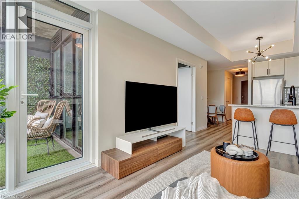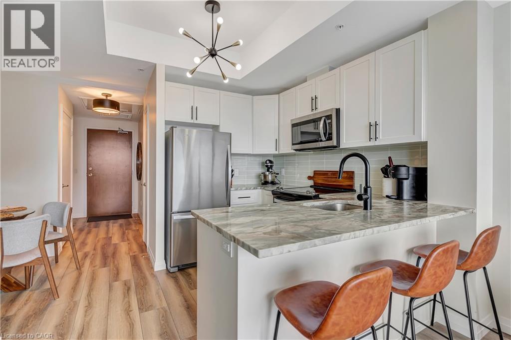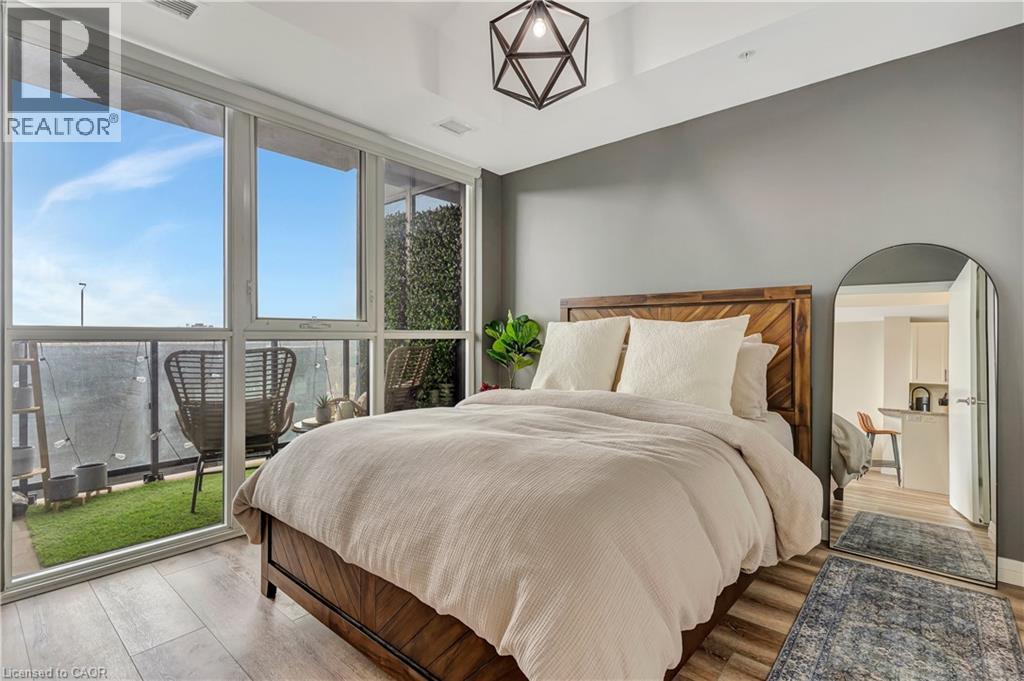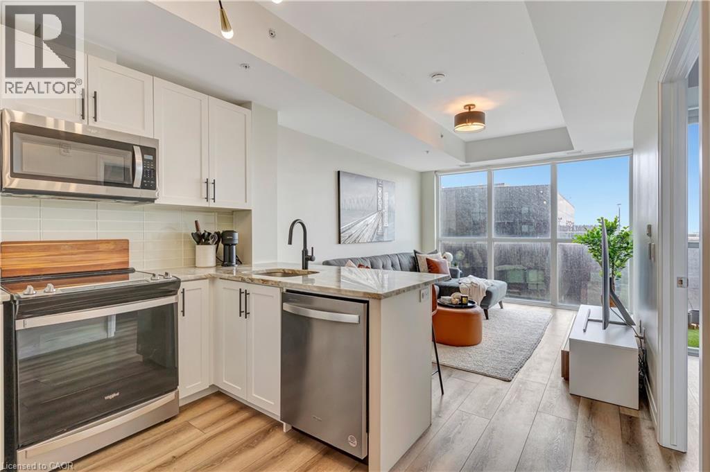 CITY LIVING, ELEVATED: YOUR NEW CHAPTER AT GARMENT ST. Imagine waking up in a bedroom bathed in soft light, knowing that if you wanted a few more hours of perfect sleep, your blackout blinds have you covered. You step onto premium vinyl flooring and head toward a kitchen that feels like it was pulled straight from a design magazine, 36” upgraded white cabinetry, sleek granite countertops, and a stylish glass backsplash that catches the morning sun. As you brew your coffee you look across your open-concept living space. With a quick tap, the motorized privacy blinds glide open, revealing the pulse of the city below, enjoy the view from the windows or your balcony. Located in the heart of the Innovation District, your commute is likely a leisurely stroll. You’re steps away from Google, Deloitte, KPMG, and Communitech. If you’re a student or professional at the McMaster School of Medicine or UW School of Pharmacy, you’re right where you need to be. Over 620 sqft, 1 bedroom with a wall-to-wall closet, and an extra-large bathroom for a spa-like experience under the high-pressure chrome shower head. The buildings amenities are ideal for hosting friends - on the landscaped BBQ terrace or taking a dip in the outdoor pool (complete with an accessible elevator and shower). Hit the fitness room, find your zen in the yoga area, or shoot some hoops at the on-site sports court. Whether you’re heading across town or out of the city, you are perfectly positioned. With the ION LRT, Go Train, and the future transit hub just minutes away, the entire region is your backyard. Parking: Secure parking available for lease at $140/month. (id:4555)