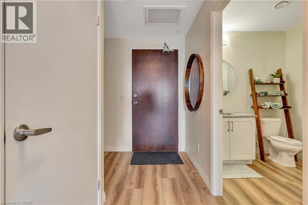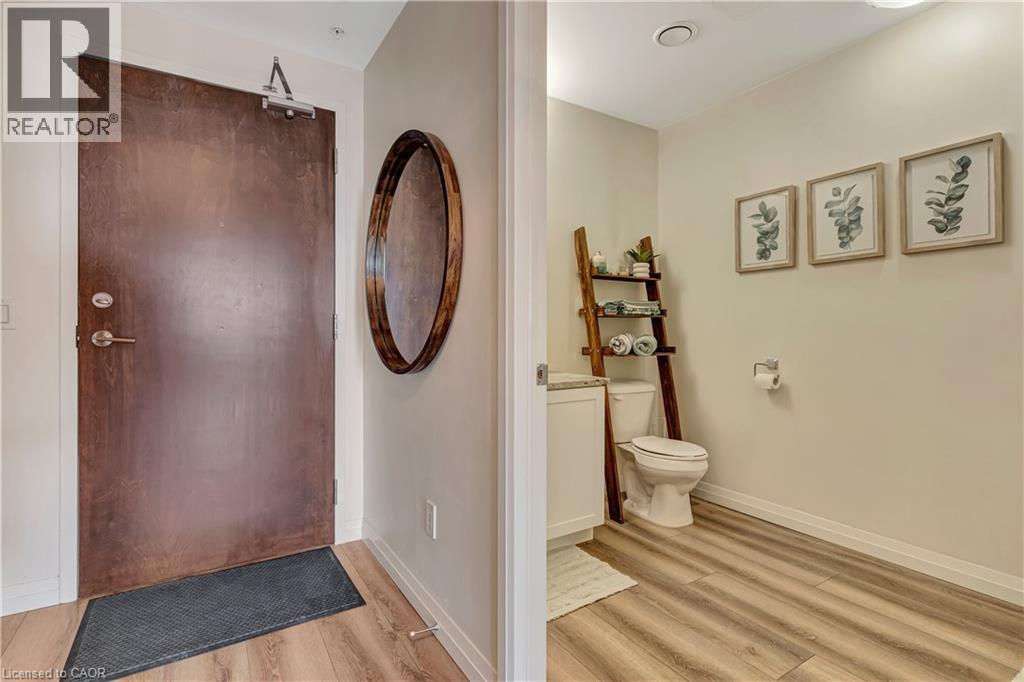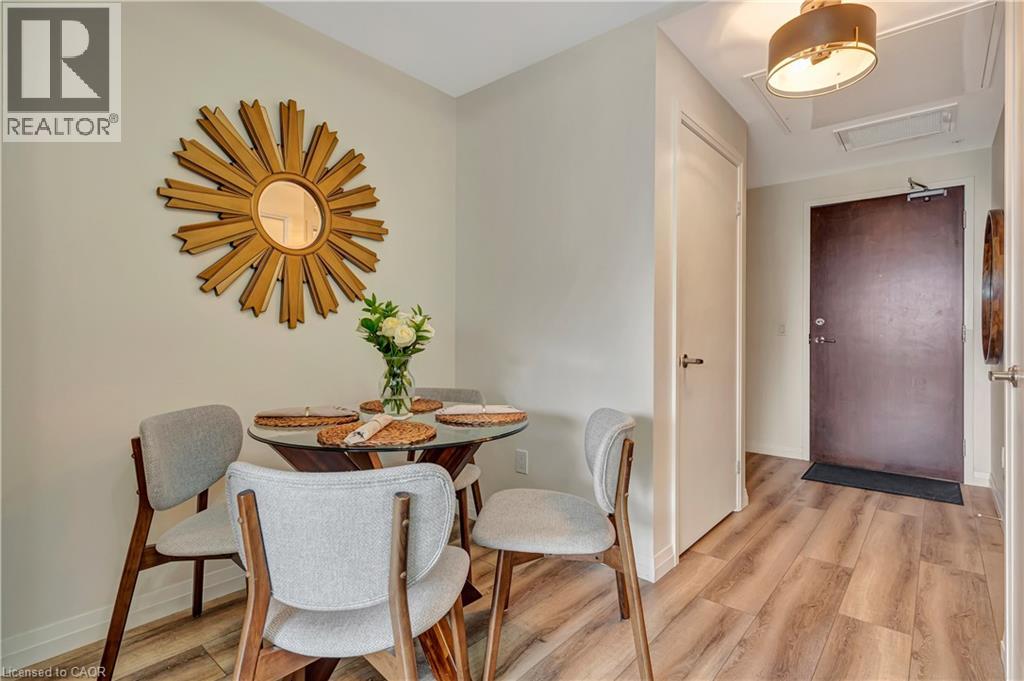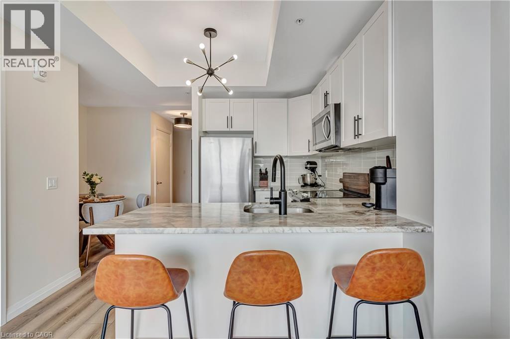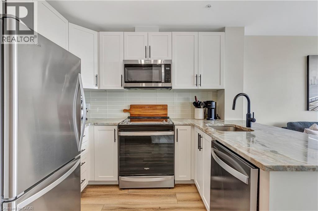 CITY LIVING, ELEVATED: YOUR NEW CHAPTER AT GARMENT ST. Imagine waking up in a bedroom bathed in soft light, knowing that if you wanted a few more hours of perfect sleep, your blackout blinds have you covered. You step onto premium vinyl flooring and head toward a kitchen that feels like it was pulled straight from a design magazine, 36” upgraded white cabinetry, sleek granite countertops, and a stylish glass backsplash that catches the morning sun. As you brew your coffee you look across your open-concept living space. With a quick tap, the motorized privacy blinds glide open, revealing the pulse of the city below, enjoy the view from the windows or your balcony. Located in the heart of the Innovation District, your commute is likely a leisurely stroll. You’re steps away from Google, Deloitte, KPMG, and Communitech. If you’re a student or professional at the McMaster School of Medicine or UW School of Pharmacy, you’re right where you need to be. Over 620 sqft, 1 bedroom with a wall-to-wall closet, and an extra-large bathroom for a spa-like experience under the high-pressure chrome shower head. The buildings amenities are ideal for hosting friends - on the landscaped BBQ terrace or taking a dip in the outdoor pool (complete with an accessible elevator and shower). Hit the fitness room, find your zen in the yoga area, or shoot some hoops at the on-site sports court. Whether you’re heading across town or out of the city, you are perfectly positioned. With the ION LRT, Go Train, and the future transit hub just minutes away, the entire region is your backyard. Parking: Secure parking available for lease at $140/month. (id:4555)