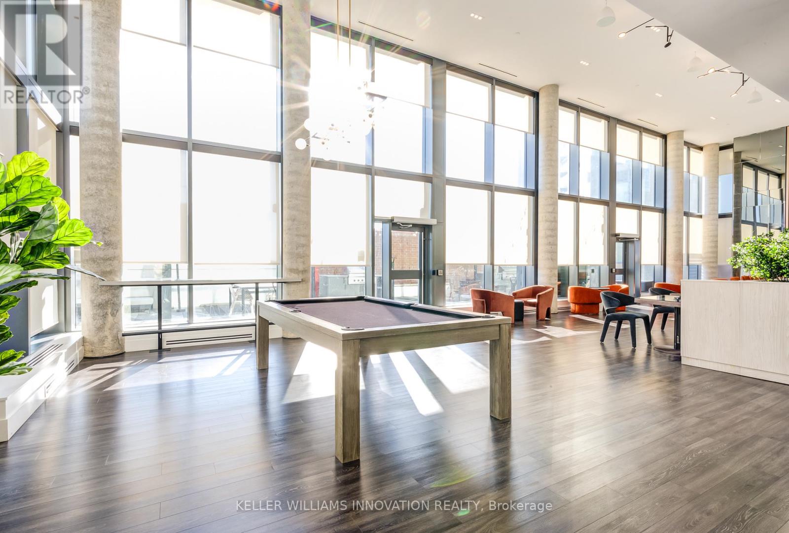 This stunning 1-bedroom condo on the 3rd floor of Union Towers at Station Park in downtown Kitchener offers a stylish and modern living experience. Being on the 3rd floor, you're high enough for amazing views of Kitchener, and steps away from amenity access! Spanning 560 square feet, the open-concept layout seamlessly blends living, dining, and kitchen areas, and enhanced by ample natural light due to the southern exposure and amazing sunset views. An added bonus - only offered in the podium units on the first couple of floors, you get the extended ceiling height! This condo features a 4-piece bathroom and convenient in-suite laundry for ultimate comfort. Residents can indulge in a wealth of luxury amenities, including a two-lane bowling alley with a lounge, a premier lounge area complete with a bar and games, and a private hydropool swim spa and hot tub. Fitness enthusiasts will appreciate the well-equipped gym, yoga/Pilates studio, and Peloton studio, while pet owners can pamper their furry friends at the dog washing station and pet spa. The landscaped outdoor terrace invites relaxation with cabana seating and BBQs, and a concierge desk ensures resident support. For special occasions, a private dining room with kitchen appliances, dining table, and lounge chairs awaits. This condo truly embodies a vibrant urban lifestyle. (id:4555)