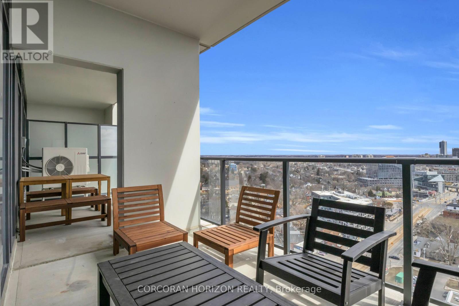 Unit 1708 at 741 King Street W is a great option for anyone looking to enjoy modern condo living in a super convenient Kitchener location. Thisbright one-bedroom unit features high ceilings, large windows, and an open layout that brings in plenty of natural light throughout the day. Thekitchen is well laid out with built-in appliances and everything you need for day-to-day living. The living area feels open and comfortable, withdirect access to the balcony-also accessible from the bedroom-creating a seamless indoor-outdoor flow and the perfect spot to relax, enjoyyour morning coffee, or take in the city views from the 17th floor. The bathroom has been nicely updated with a tiled walk-in shower, and in-suitelaundry adds everyday convenience. The bedroom offers a comfortable retreat with large windows and plenty of natural light. The building offersa solid range of amenities, including a business centre with Wi-Fi, visitor parking, saunas, a party room, and BBQ areas. You're just steps fromthe Kitchener GO Station and LRT, making it easy to get around. Plus, you're within walking distance to hospitals, Google Waterloo, shops, cafés,and plenty of great restaurants-right in the heart of downtown Kitchener. (id:4555)