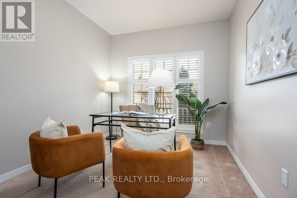 ATTENTION PROFESSIONALS & YOUNG RETIREES! Enjoy the lifestyle in this 2+1 bedroom Bungalow condo w/ double garage, backyard, 3 full baths, walkout basement, finished top to bottom! Before you even enter this bright bungalow, you'll be greeted with the inviting front porch and updated front door, then comes the main floor featuring a front bedroom w/ access to a 4-pc bath (makes for a great guest bedroom or office). The primary bedroom suite has a huge window facing south west, updated carpet, large walk-in-closet w/ a mirrored door as well as a modern ensuite bath w/ an updated walk-in shower w/ glass doors, right next to the Primary bedroom on the main floor, there is the laundry closet, convenience at its best! The open concept Living area including the Living room, Dining room and kitchen has lots of windows overlooking the back of the house, always bathing in the afternoon sun due to the south west exposure, beautiful hardwood floors, vaulted ceilings & a gorgeous fireplace in the living room, garden doors off the dining room to the composite deck with awning, remote control operated. The open staircase next to the Living room will take you to the finished bright walkout basement, which really adds to this already spacious home. In the walkout basement, there is a large Rec room with updated sliding doors with built in blinds to a patio, a good size bedroom with a decent window and a large closet, a full 3 piece bath for your added convenience, an office/play area, in addition to a hobby room (Bonus room), a cold room, a storage room full or organizers (included with the house), right next to the utility room. This beautiful bungalow condo features California Stucco Ceilings & Custom shutters throughout. It also includes a backyard & 3 outdoor siting areas, loaded with updates, auto garage door opener, Furnace & AC (2021), Water Purification System, C/V, close to shopping, bus, parks, Hiway 401. Pride of ownership, move-in ready in a great location. (id:4555)