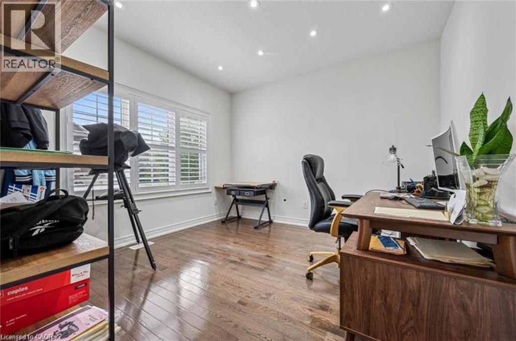 Welcome to 77 Eaglecrest Street, an executive 2-storey home nestled in one of Kitchener’s most sought-after communities. Boasting 5 generously-sized bedrooms and 3 full bathrooms upstairs, this home also features a main-floor office ideal for working from home. The gourmet kitchen opens to a spacious living and dining area adorned with oversized windows, allowing for exceptional natural light throughout. Highlights include a tray ceiling, dark wood-style flooring, a center island. Enjoy the curb appeal of a decorative interlock driveway and relax in the fully fenced backyard with a landscaped patio, perfect for entertaining or quiet evenings. Located steps from the Grand River, conservation trails, and minutes to shopping, schools, and highways, this home combines upscale comfort with everyday convenience. (id:4555)