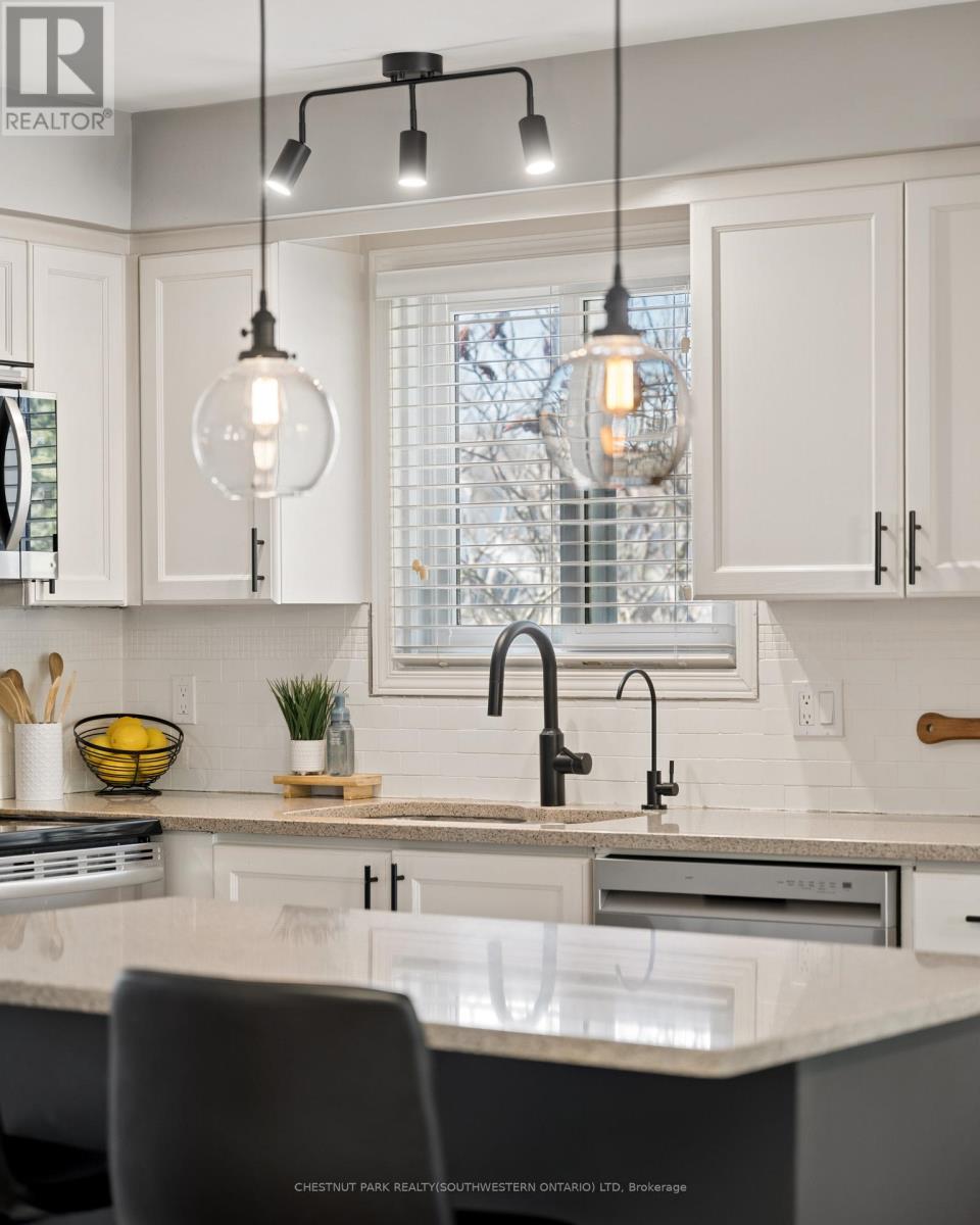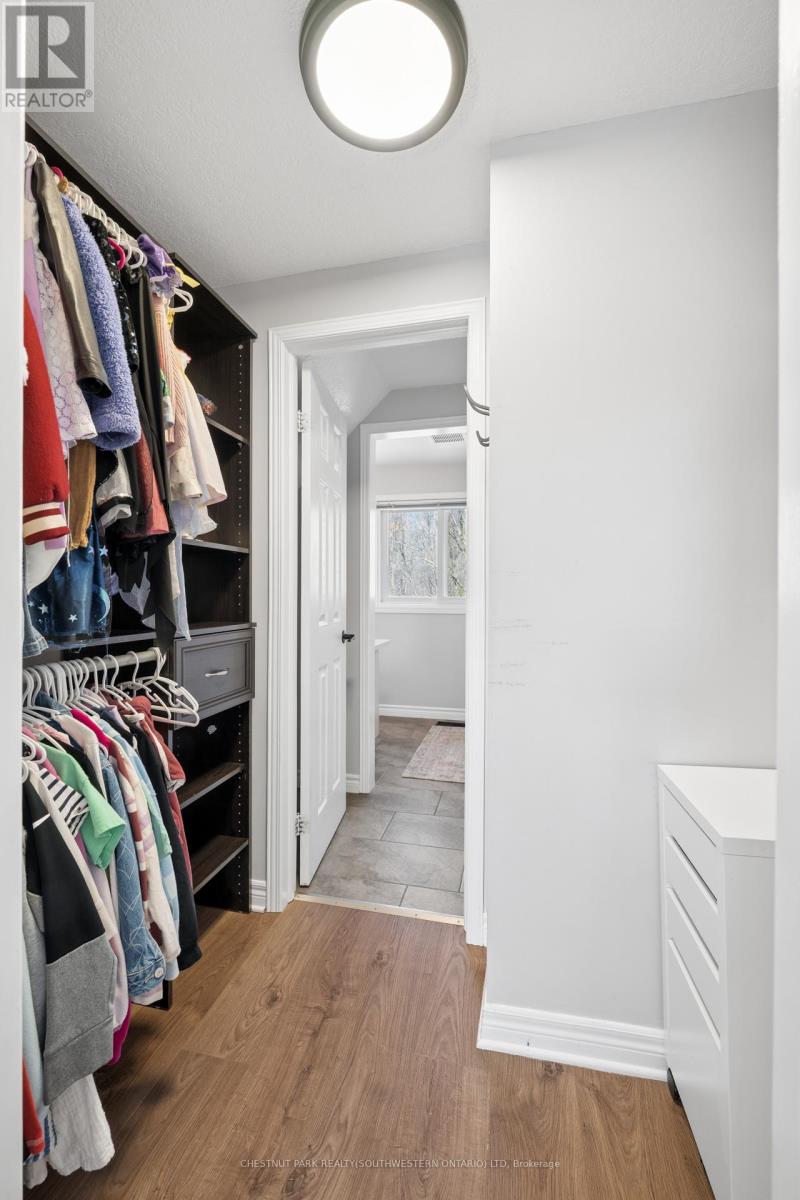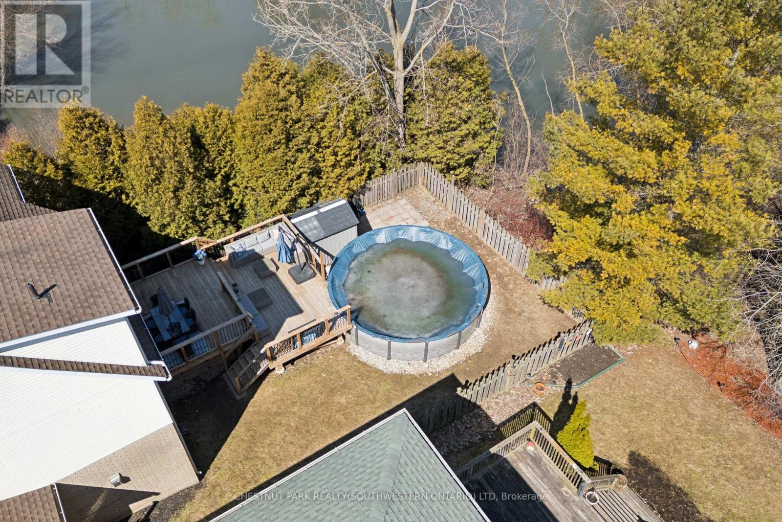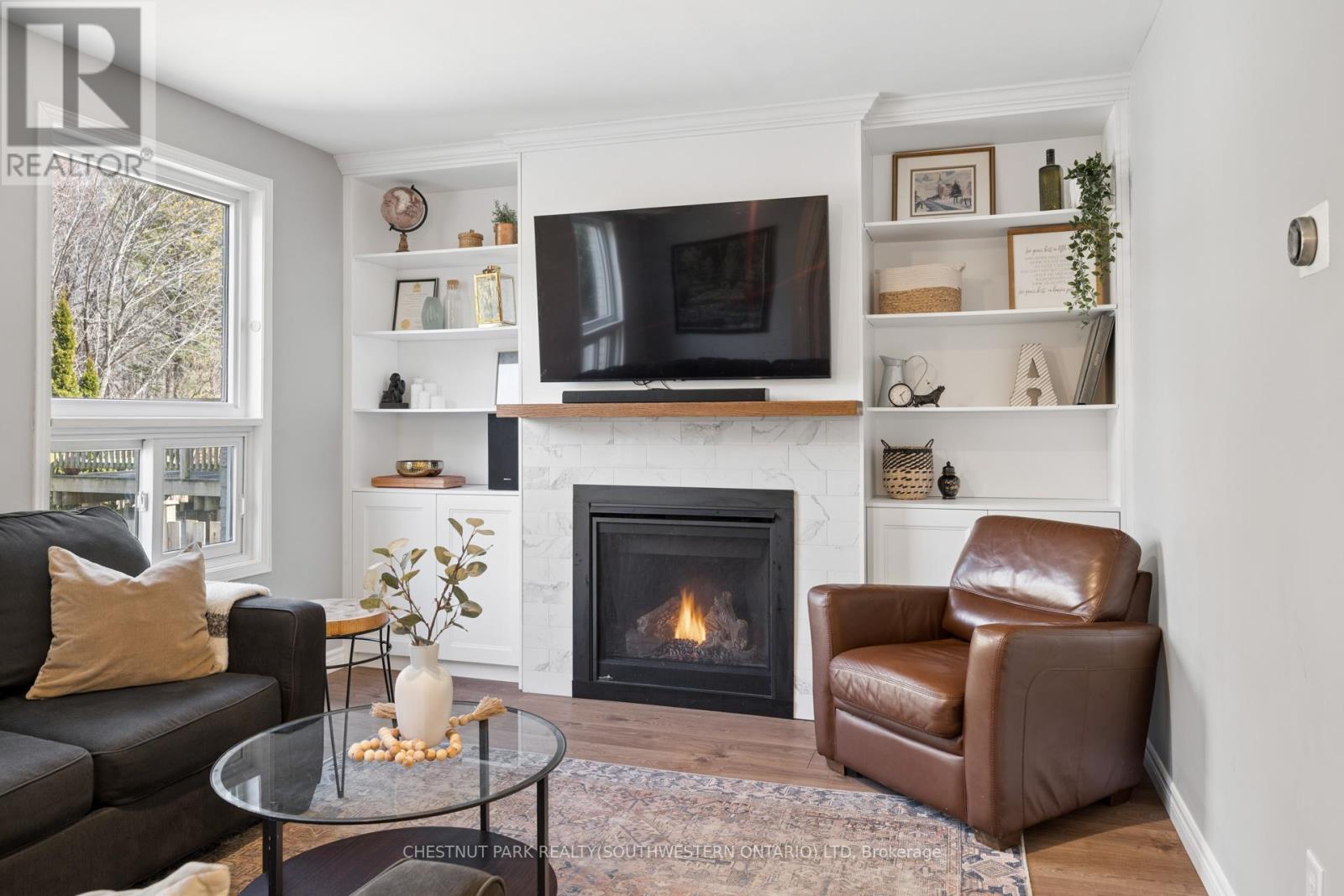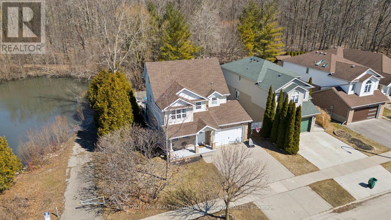 Set on a rare lot backing and siding onto green space, privacy here is something you'll appreciate right away. No rear neighbours and only one neighbour to the side gives you space you don't often find in family neighbourhoods, with year round views that show off every season. The main floor is designed for families. An updated kitchen with an island and granite counters anchors the space, with a dining area that includes built in storage and a coffee bar. The family room is centred around a gas fireplace with updated built ins and clean sight-lines to the kitchen and back deck. Upstairs, the primary suite has a walk in closet with built ins and its own ensuite. Two additional bedrooms share a Jack and Jill bathroom, with one featuring a walk in closet and additional built in storage. The third floor loft is a standout. Currently used as a fourth bedroom for a teenager, but it easily works as a second living space, office, or a bit of a "lady loft" escape. The finished basement adds more usable space, with a walk up to the backyard that makes it especially functional in the summer. Outside, the backyard is private and easy to enjoy with a deck, newer saltwater pool, and shed, with no direct sightlines from neighbours. The 1.5 car garage is set up for an EV and works well for storage and parking, while the driveway fits two comfortably. Carpet free throughout, this is a turnkey home in a location that's tough to replicate. Walking distance to schools, and close to shopping, restaurants, the library and expressway access. (id:4555)