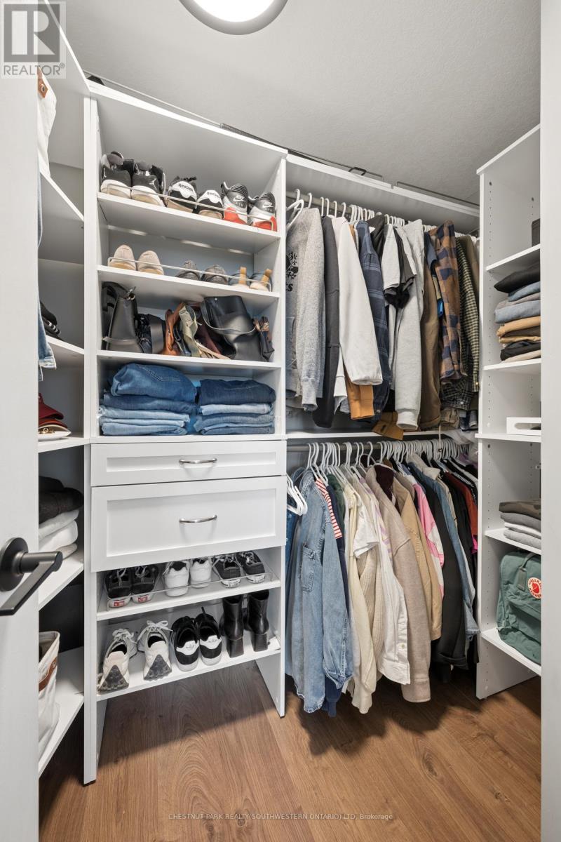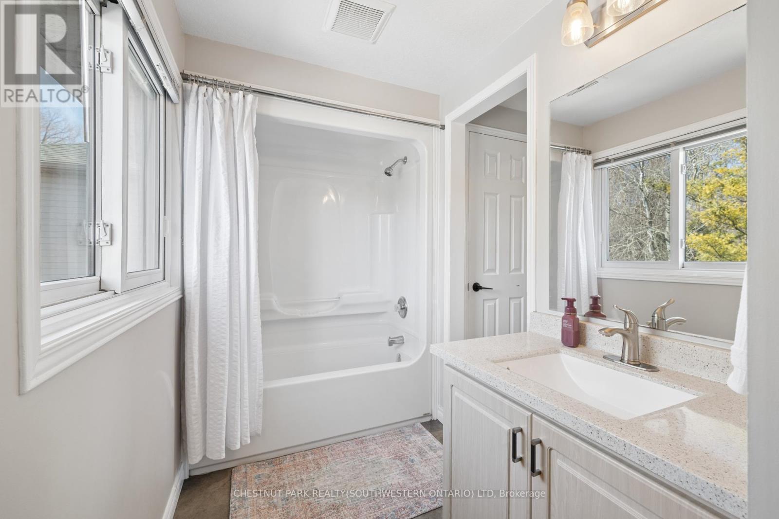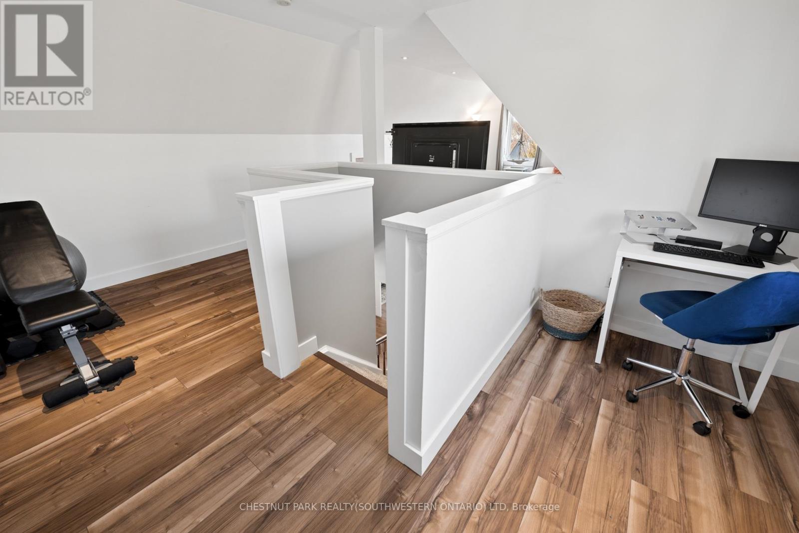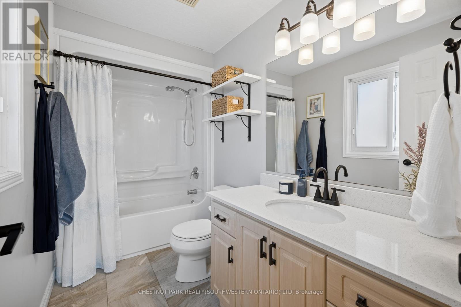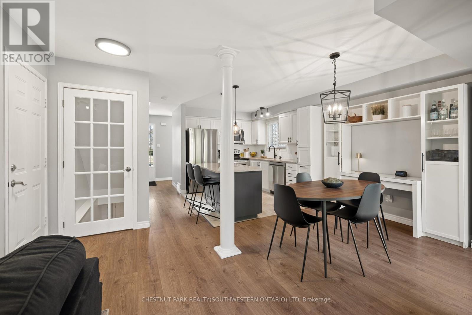 Set on a rare lot backing and siding onto green space, privacy here is something you'll appreciate right away. No rear neighbours and only one neighbour to the side gives you space you don't often find in family neighbourhoods, with year round views that show off every season. The main floor is designed for families. An updated kitchen with an island and granite counters anchors the space, with a dining area that includes built in storage and a coffee bar. The family room is centred around a gas fireplace with updated built ins and clean sight-lines to the kitchen and back deck. Upstairs, the primary suite has a walk in closet with built ins and its own ensuite. Two additional bedrooms share a Jack and Jill bathroom, with one featuring a walk in closet and additional built in storage. The third floor loft is a standout. Currently used as a fourth bedroom for a teenager, but it easily works as a second living space, office, or a bit of a "lady loft" escape. The finished basement adds more usable space, with a walk up to the backyard that makes it especially functional in the summer. Outside, the backyard is private and easy to enjoy with a deck, newer saltwater pool, and shed, with no direct sightlines from neighbours. The 1.5 car garage is set up for an EV and works well for storage and parking, while the driveway fits two comfortably. Carpet free throughout, this is a turnkey home in a location that's tough to replicate. Walking distance to schools, and close to shopping, restaurants, the library and expressway access. (id:4555)