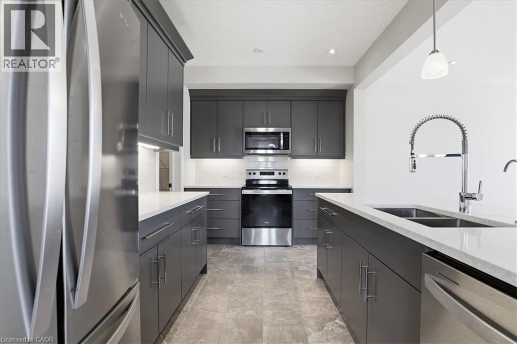 ***END UNIT***MOVE IN READY*** AVAILABLE FOR IMMEDIATE OCCUPANCY *** NON SMOKERS, NO PETS *** SANDRA SPRINGS, KITCHENER'S MOST SOUGHT AFTER NEW SUBDIVISION! STEPS TO PARKS AND TRAILS! APPROX 2015 SQ.FT. 4 BEDROOM, 3 BATHROOMS. Features include; 9 foot ceilings, luxury vinyl flooring, quartz countertops in kitchen and baths, custom kitchen with breakfast bar overhang, soft close drawers, under cabinet lighting, crown molding, separate pantry, full hardwood staircase and pot lights. Second floor features a HUGE MASTER BEDROOM with a large en suite, glass shower door, porcelain tile. Main bathroom with porcelain tile tub/shower combo. Modern move in ready home. SECOND FLOOR LAUNDRY for the added bonus AND DECK, FENCE, ASPHALT DRIVEWAY. Close to the highway, schools, shops, plus restaurants. NON SMOKERS AND NO PETS. (id:4555)