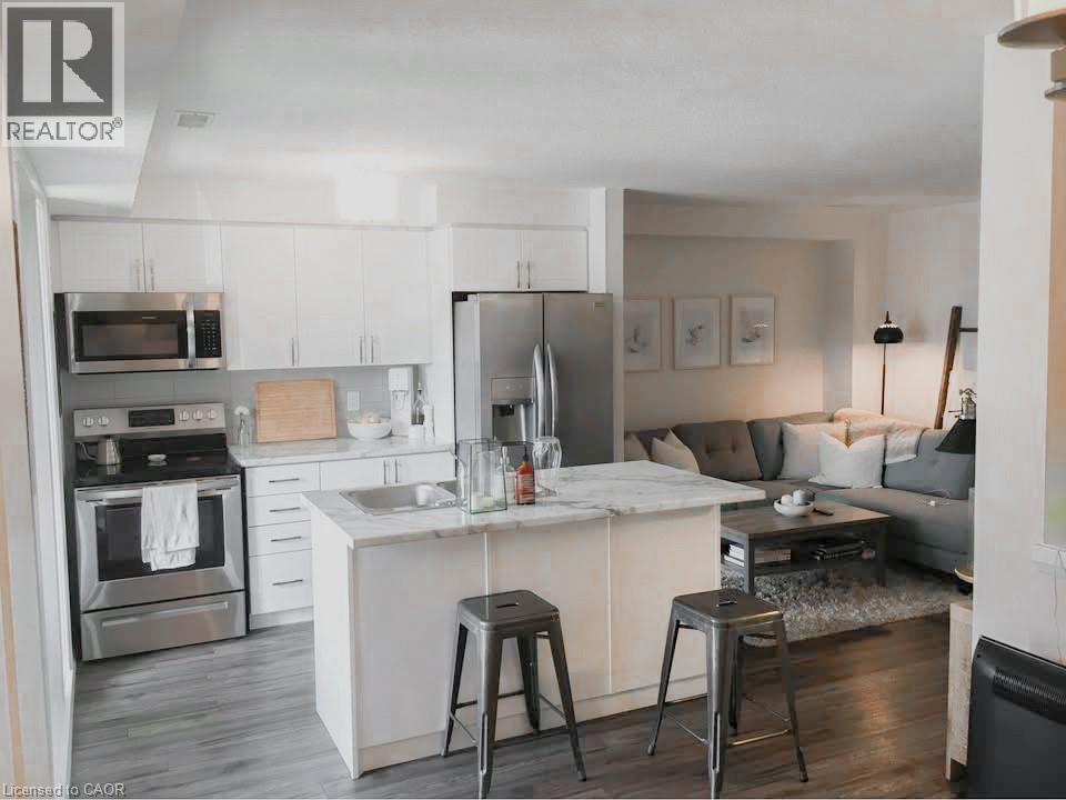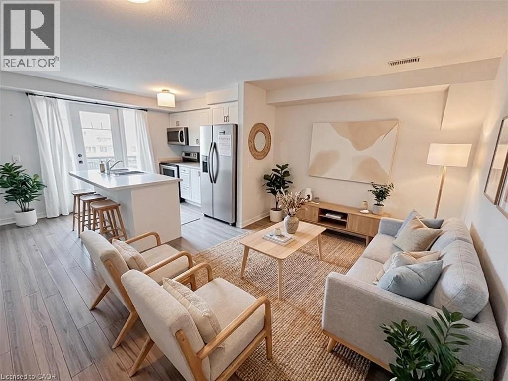 Welcome to this modern 2-storey townhome in the sought-after Woodhaven South community in Kitchener, available for lease starting May 1st. Conveniently located at 1989 Ottawa Street South, this well-appointed home offers both comfort and functionality in a prime location. Featuring 2 spacious bedrooms and 1.5 bathrooms (with a convenient main floor powder room and full bath upstairs), this unit is designed for easy living. Enjoy two private balconies, perfect for relaxing or entertaining. The main level showcases stylish laminate flooring, upgraded lighting, and an open-concept layout complete with a breakfast bar and sleek countertops. The kitchen is equipped with brand new stainless steel appliances, and the home includes the added convenience of an in-suite washer and dryer. One designated parking space is included, with the option to rent a second space for $50/month. Additional visitor parking is available. Located in the desirable Woodhaven South neighbourhood, you’ll be just minutes from schools, parks, trails, Sunrise Shopping Centre, restaurants, entertainment, and have quick access to the expressway—making commuting a breeze. Utilities are extra. Minimum one-year lease required. A fantastic opportunity to lease a stylish home in a highly convenient location. (id:4555)