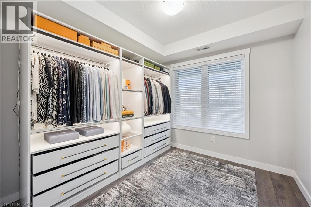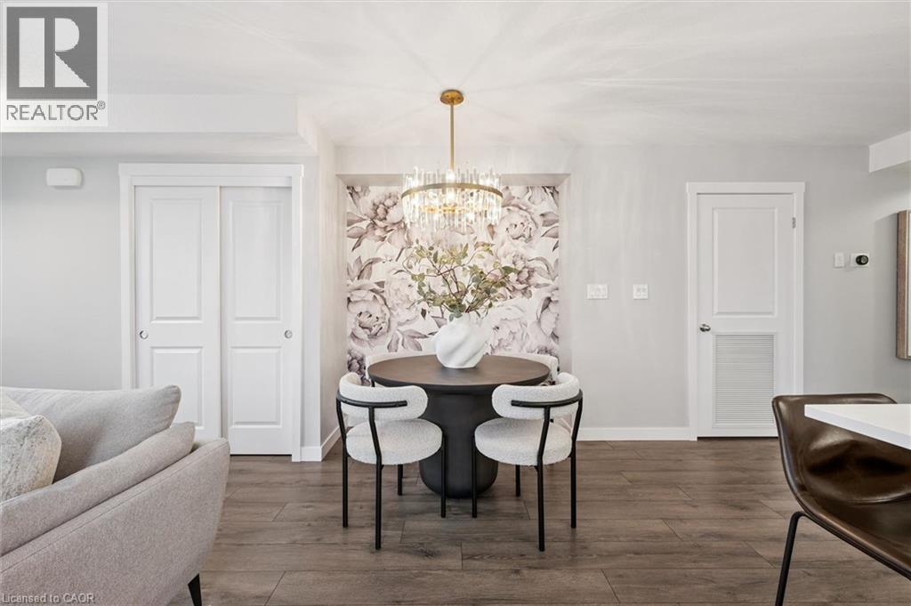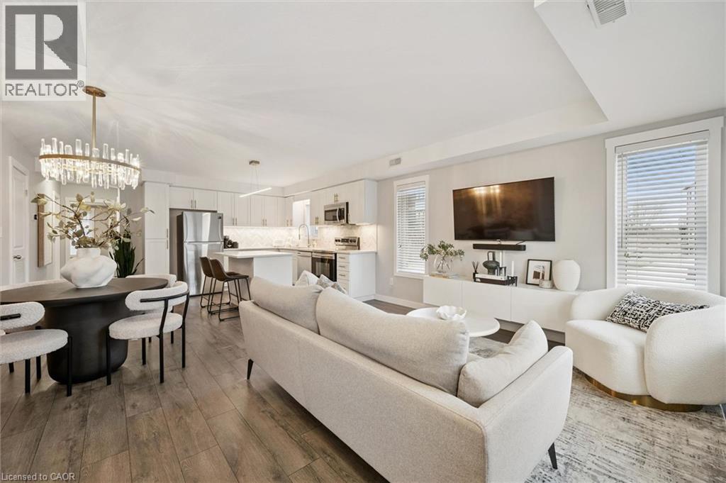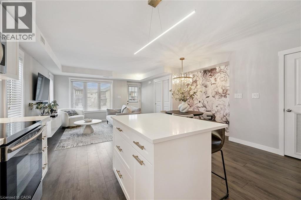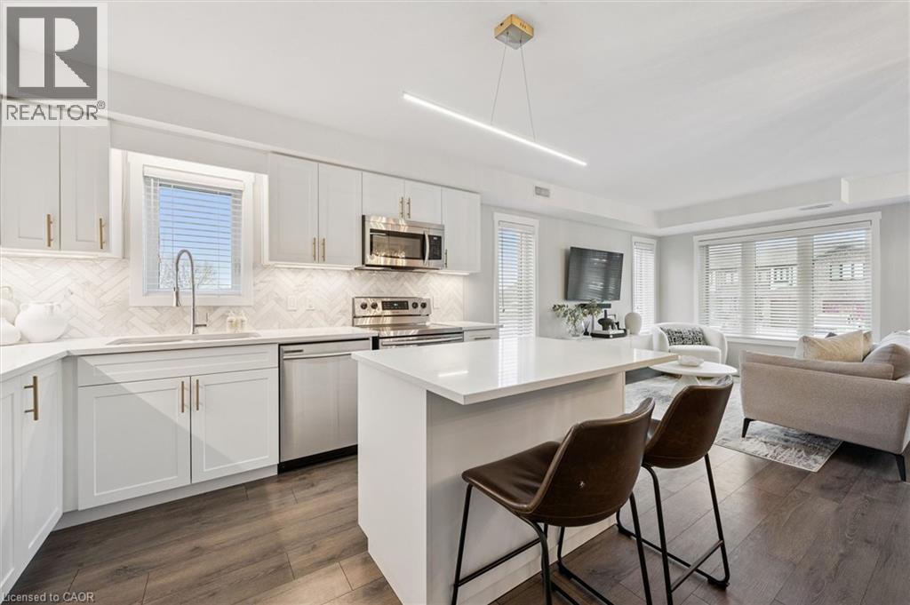 Welcome to this beautifully upgraded 2-bedroom, 2-bathroom corner unit townhouse in the highly sought after Huron Heights community. This single-level home offers a rare blend of designer finishes, functional layout, and everyday convenience. Thoughtfully curated by MC Design Styles, the interior showcases a cohesive, elevated aesthetic throughout. The kitchen features a timeless herringbone Carrera marble backsplash, custom under-cabinet lighting, upgraded fixtures, and brass hardware. The open-concept living space is anchored by a custom built-in media unit and textured accent wall, while Lutron dimmers and a fully integrated Nest system provide seamless smart home living. Enjoy upgraded designer lighting throughout, including a statement LED island feature and modern dining chandelier, complemented by premium custom window treatments that add both privacy and a polished, high-end finish. The spacious primary bedroom offers a spa-inspired ensuite, while the second bedroom and full bath provide flexibility for guests or a home office. As a bright corner unit, the home is filled with natural light and designed for comfortable living. Ideally located close to highway access, Longo’s, RBJ Schlegel Park, walking trails, schools, and more. A standout lease opportunity in a vibrant, family-friendly neighbourhood. (id:4555)