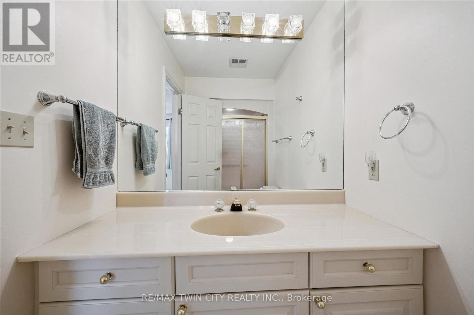 Custom-built executive condominium townhome in prestigious Westmount is one of just 8 units in the complex. It offers over 2600 sq.ft. plus a finished basement, a large 2-car garage, and interlock brick driveway. Ideal location with quick access to Belmont Village, Uptown Waterloo, and the Iron Horse Trail. This end unit, former builder's home, features a welcoming and spacious tiled foyer with sweeping staircase, updated hardwood flooring through the formal living room, dining room, and family room with gas fireplace. The updated kitchen has Brazilian granite counters, built-in appliances, a large island, and walkout to a private deck and landscaped yard. Upstairs you will find three generous bedrooms, including primary suite with walk-in closet and updated spa-like 5-pc ensuite that features a soaker tub, glass shower, and double vanity. Recent updates include newer roof (2017) and new windows throughout (2024). The finished lower level features a large rec room with wood-burning fireplace, 2-pc bath, workshop, and lots of storage. (id:4555)