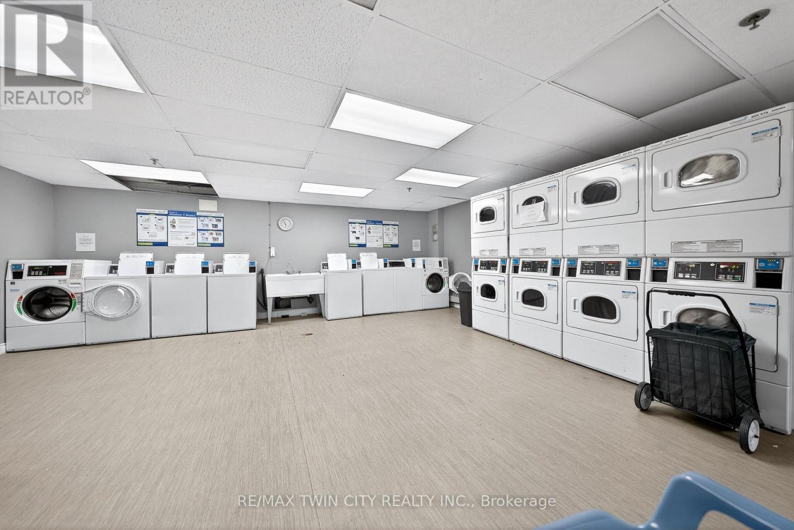 This is the condo you've been waiting for! Rarely offered in this size & layout-sun-filled, all-inclusive condo living with southwest exposure. Welcome to 605-1100 Courtland Avenue East in Kitchener. Offering approximately 1,195 SF of carpet-free living space, this expansive 2-bedrm condo stands out with its generous proportions, functional layout, & a private balcony spanning the full width of the unit, an ideal extension of your living space to enjoy afternoon sun & evening unwind. The main living area is exceptionally spacious, featuring an open-concept living & dining layout filled with natural light & direct access to the balcony. Updated flooring, modern light fixtures, & a clean, neutral palette create a move-in ready interior that feels both comfortable & elevated. The kitchen is thoughtfully designed with ample cabinetry, tiled backsplash, laminate countertops, & a dedicated coffee bar/prep area, seamlessly connected to the main living space, ideal for both everyday living & entertaining. Both bedrms are generously sized with excellent closet space, complemented by a well-maintained 4-piece bathrm with tub/shower combination, & multiple in-suite storage areas. 1surface parking space is included. Residents enjoy access to a full suite of amenities, including an outdoor pool, sauna, fitness centre, & party rm-offering a low-maintenance, lifestyle-focused living experience. The location is exceptional: steps to the LRT & minutes to Fairview Park Mall, groceries, restaurants, & everyday essentials. Surrounded by parks & recreation including Wilson Park, Vanier Park, Rockway Gardens & Golf Course, & the Activa Sportsplex. Close to Chicopee Ski & Summer Resort, Grand River Hospital, & a range of public & Catholic schools, with quick HWY/401 access. Condo fees include heat, hydro, water, & building amenities-delivering true all-inclusive living with predictable monthly costs & minimal upkeep. Spacious, bright, & well-located-this is condo living done right. (id:4555)