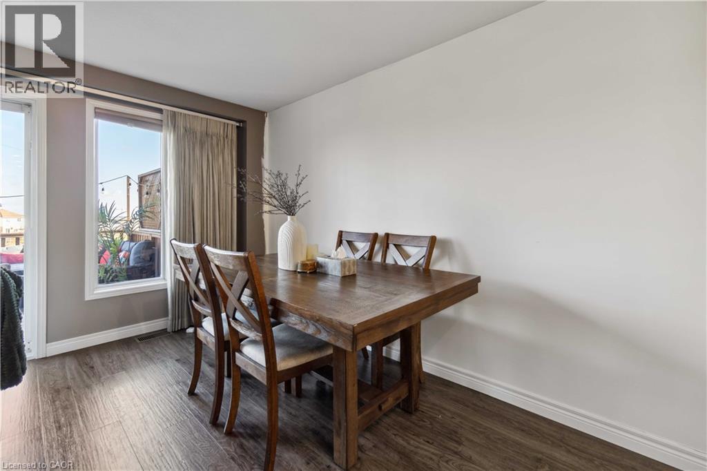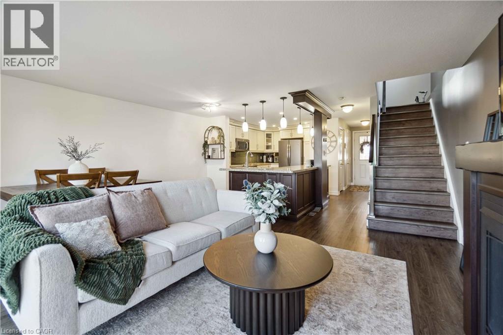 Welcome to this beautifully designed freehold end-unit townhouse in the highly desirable Laurentian West community of Kitchener. Offering approximately 1,800 sq ft of total living space, this upgraded home is perfect for families, first-time buyers, or investors seeking strong rental potential. Situated on a quiet street yet just minutes from the expressway, Highway 401, schools, parks, shopping, and everyday amenities, this home offers the perfect balance of convenience and tranquility. The main floor features a bright open-concept layout, creating a spacious and inviting atmosphere ideal for both everyday living and entertaining. The upgraded custom kitchen showcases maple cabinetry, granite countertops, and stainless steel appliances, seamlessly flowing into the living and dining areas. Luxury vinyl flooring runs throughout most of the home, enhancing both style and durability. Step out to the main floor deck—perfect for relaxing or entertaining—overlooking a fully fenced backyard. Set on a rare pie-shaped lot with a huge side yard, this property offers exceptional outdoor space with endless possibilities for families, entertaining, or future enhancements. The yard also features a 10x12 garden shed and scenic views of nearby walking trails and green space. Upstairs, the generous primary bedroom includes a walk-in closet, accompanied by two additional well-sized bedrooms, a full 4-piece bathroom, and a convenient linen closet. The lower level offers additional living space with a rec room, bathroom, laundry area featuring a brand new washer, and ample storage. A walkout leads to a patio with a custom enclosure, extending your usable outdoor space year-round. This exceptional property combines modern upgrades, rare lot features, and functional living in a sought-after location—an excellent opportunity not to be missed! ** Photos are from a previous listing when the property was owner occupied. Current condition may vary due to tenancy. (id:4555)