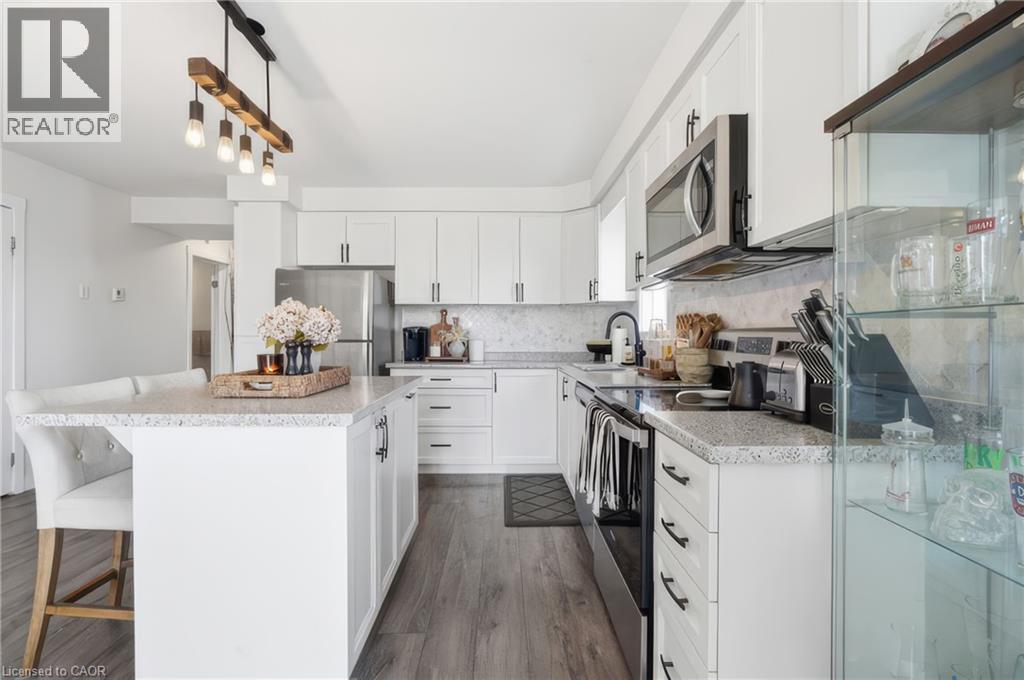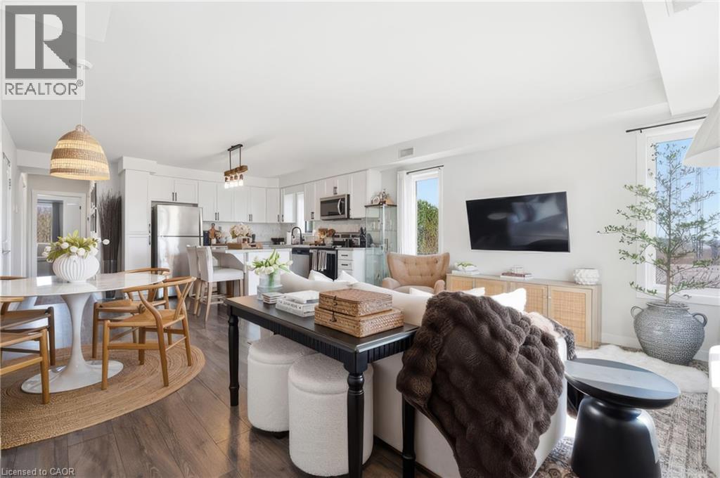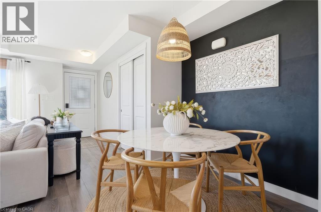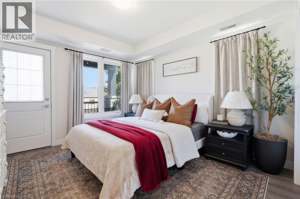 Welcome to stylish living in one of Kitchener's most desirable Huron communities. This nearly new 2-bedroom, 2 full bathroom condo townhome offers the perfect blend of modern design and everyday comfort. Step inside to a bright, open-concept layout where natural light fills the spacious living and dining area, creating an inviting space to relax or entertain. The kitchen is complete with stainless steel appliances, lots of cabinet space, and an island with breakfast bar. Enjoy carpet free living throughout, with quality laminate flooring in the main areas and bedrooms, complemented by stylish tiles in both bathrooms. The primary bedroom offers a private retreat with a 3 piece ensuite and direct access to a generous covered balcony-perfect for morning coffee or unwinding at the end of the day. A second bedroom and full bath provides flexible space for guests, family, or a home office. Additional highlights include a full-size in-suite laundry, one dedicated parking space, and ample visitor parking. Located just steps from parks, trails, and green space, including RBJ Schlegel Park and Huron Natural Area. Close to schools, shopping, and Conestoga College, this home also offers quick access to Highways 7/8 and 401 for easy commuting. (id:4555)