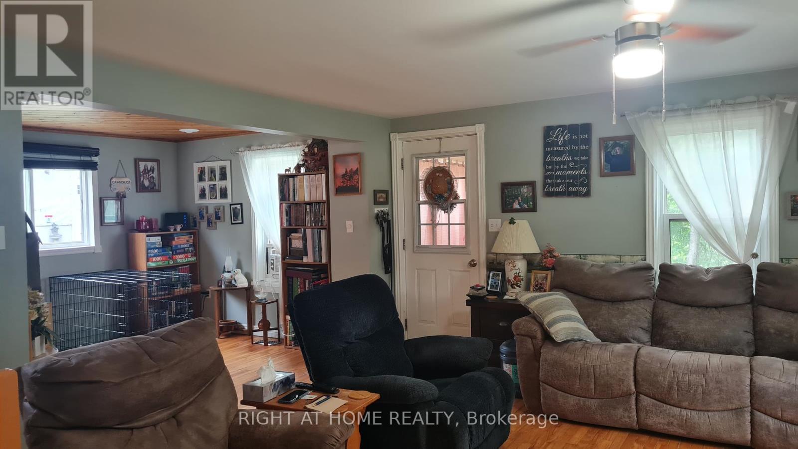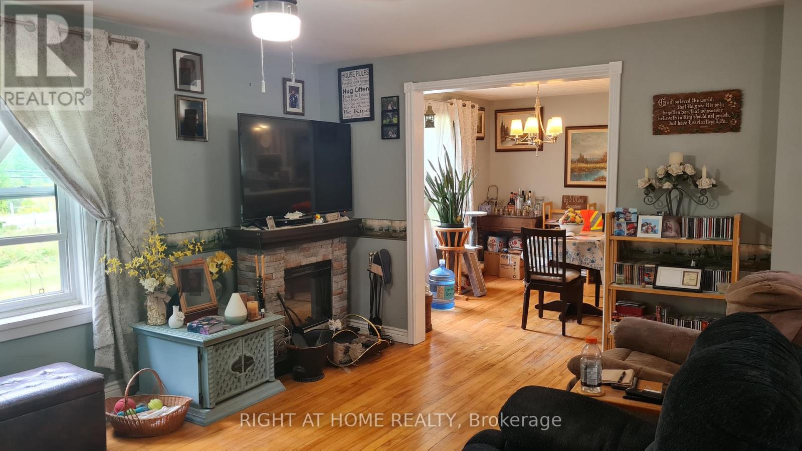 Welcome to this well-maintained detached 3 Bedroom, 1 Bath Home on HWY 60, Huntsville. Located just 10 minutes from downtown Huntsville, this house offers comfort, privacy, and character. The bright, open-concept living and dining area flows seamlessly into a cheerful kitchen with a walkout to the backyard and an island perfect for family gatherings. A versatile bonus room on the main floor provides the ideal space for a reading nook, playroom, or music room. The main level features hardwood flooring, soaring 10-ft ceilings, and plenty of natural light. Upstairs, you'll find three bedrooms, including a spacious primary suite with double closets and a sitting area, along with a 4-piece bathroom. The property also boasts a 24 x 26 detached double-car garage, a circular driveway with plenty of parking, an 8 x 10 insulated and wired treehouse, a fire pit, and beautifully landscaped gardens. All of this is within walking distance to public access at Peninsula Lake. Close to shops, hospital, school, parks and Echo Valley Nature & Bike trails. (id:4555)